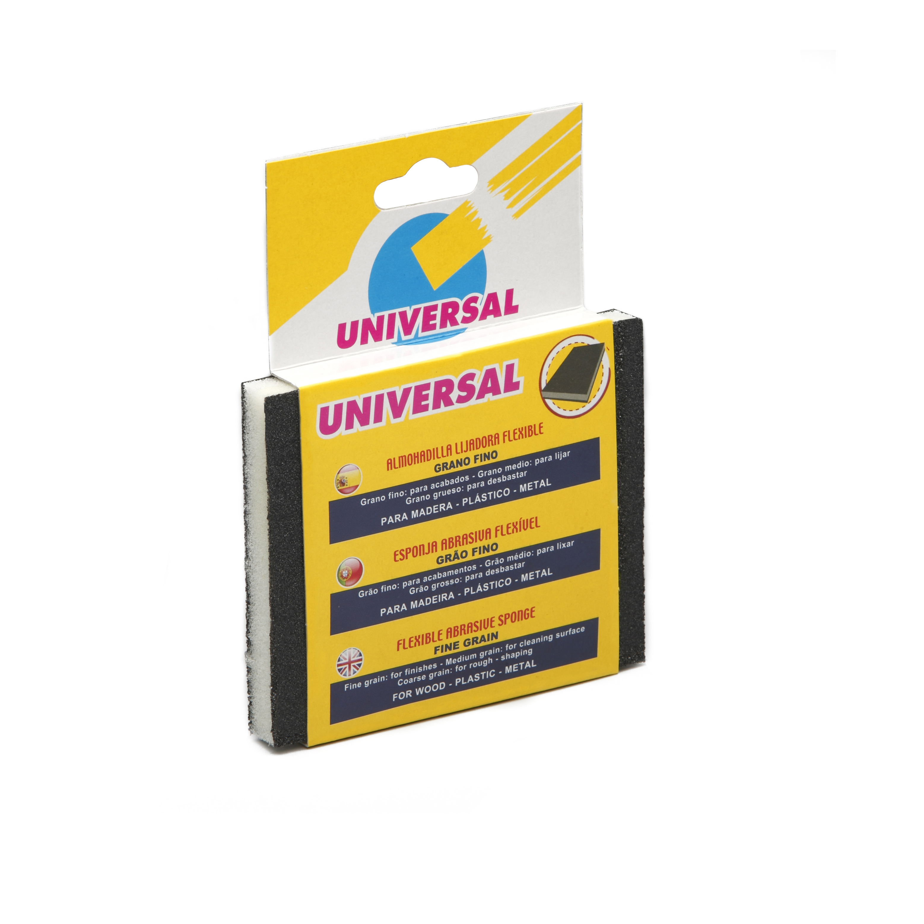 Su estructura esponjosa y ergonómica proporciona comodidad en el manejo y evita la fatiga en usos prolongados, asegurando resultados consistentes y profesionales. Presenta una tendencia muy baja al embotamiento en aplicaciones sobre lacas, rellenos y pinturas. Estas propiedades garantizan un lijado perfecto y uniforme, sin arañazos. Para aplicaciones especiales, la esponja de lijado también puede utilizarse húmeda. Adhesivo sintético.