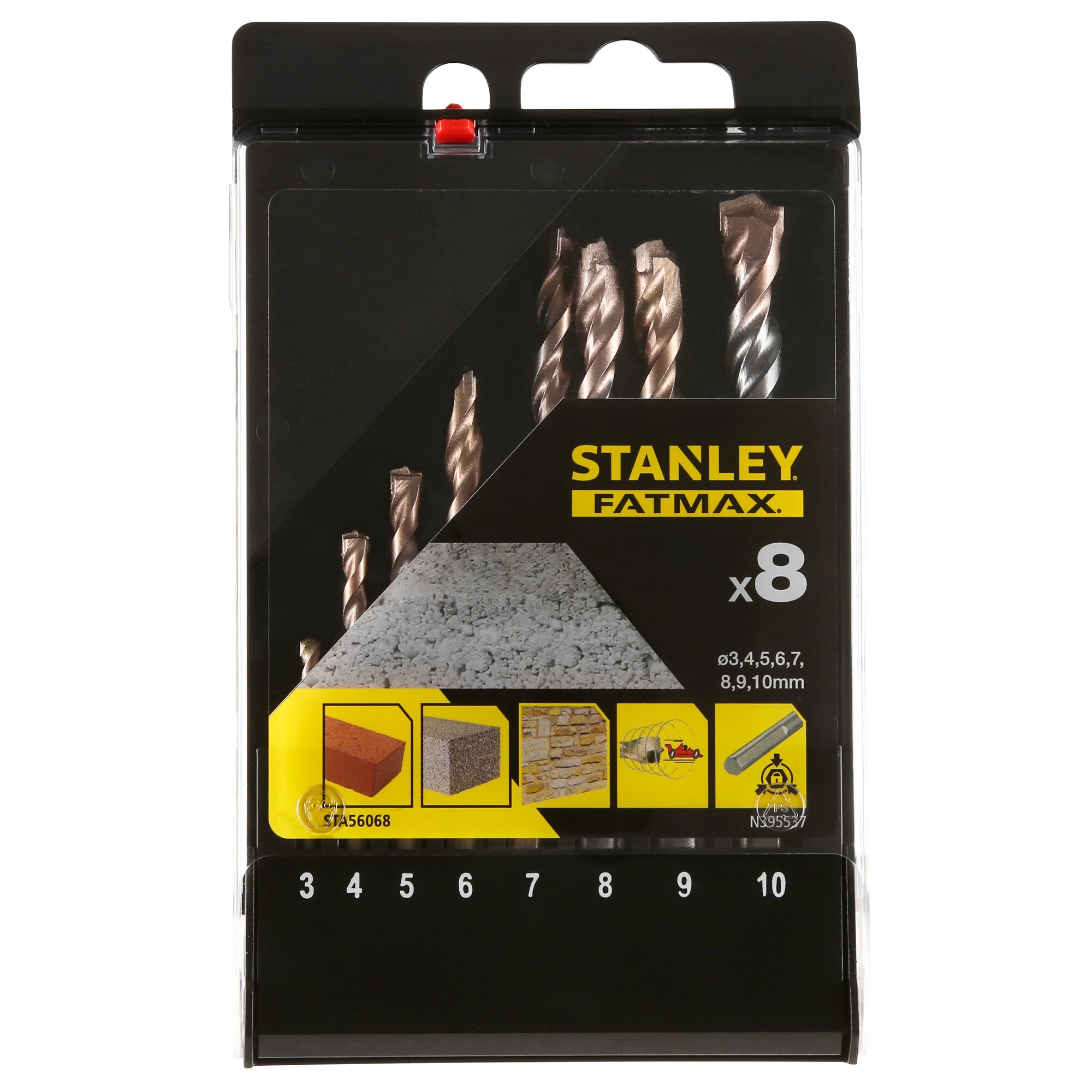 STANLEY Cassette con 8 brocas para piedra con vástago de 3 caras