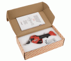 Tijera de poda eléctrica POWER CUT con batería de Litio Ion y un corte máximo de 33mm de diámetro. Tiene una potencia máxima de 500 W, motor sin escobillas, un voltaje máximo de 16,8V. Permite doble apertura de corte de 20 mm a 33 mm. Dispone de una pantalla Led con indicación de nivel de batería, historial de corte total y corte de la sesión de poda así como el código de solución de errores. Su peso total, con batería es de 950 gr. El nuevo modelo POWER CUT ha sido mejorado y permiten realizar cortes más potentes, más rápidos y más precisos con la misma autonomía de batería. Tienen un diseño más ergonómico que disminuye el cansancio durante el uso. Aumentan considerablemente la productividad, y favorecen la correcta cicatrización de la rama. Para poda universal en viña, frutal y olivo.