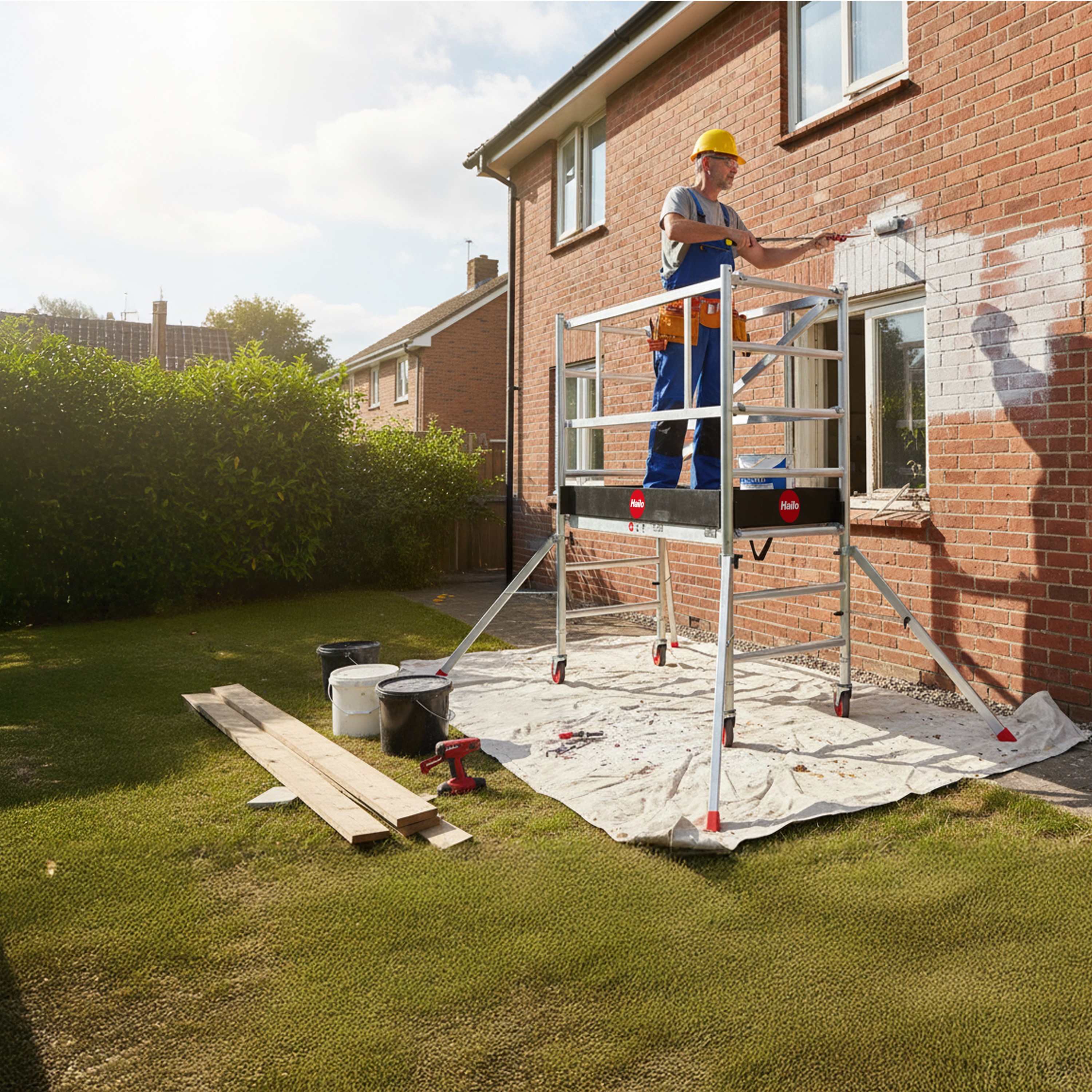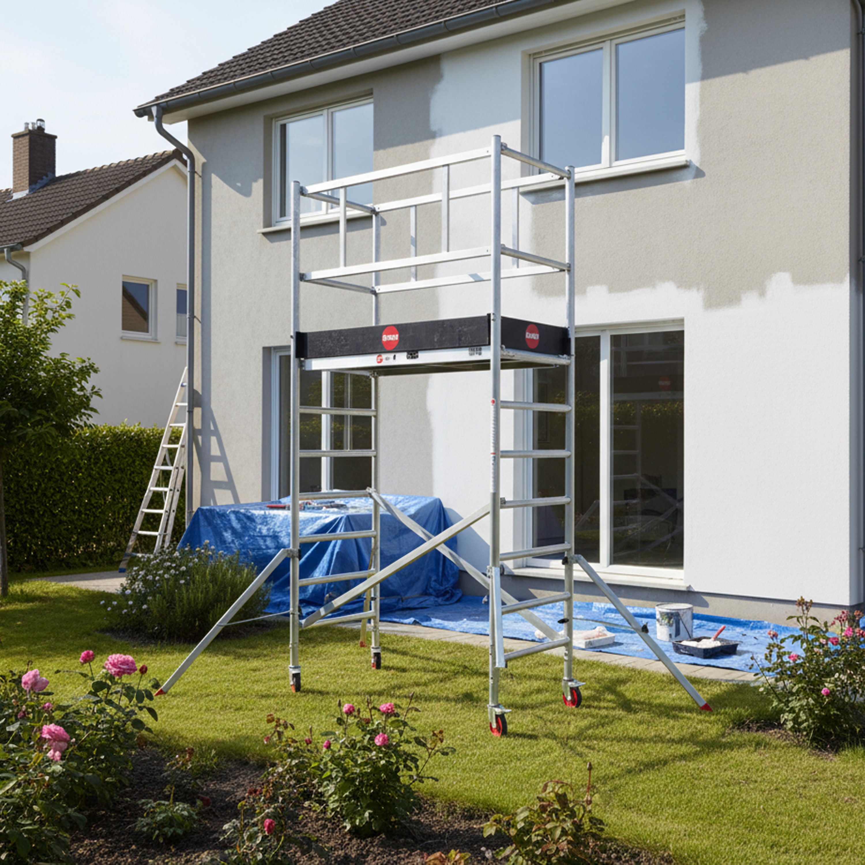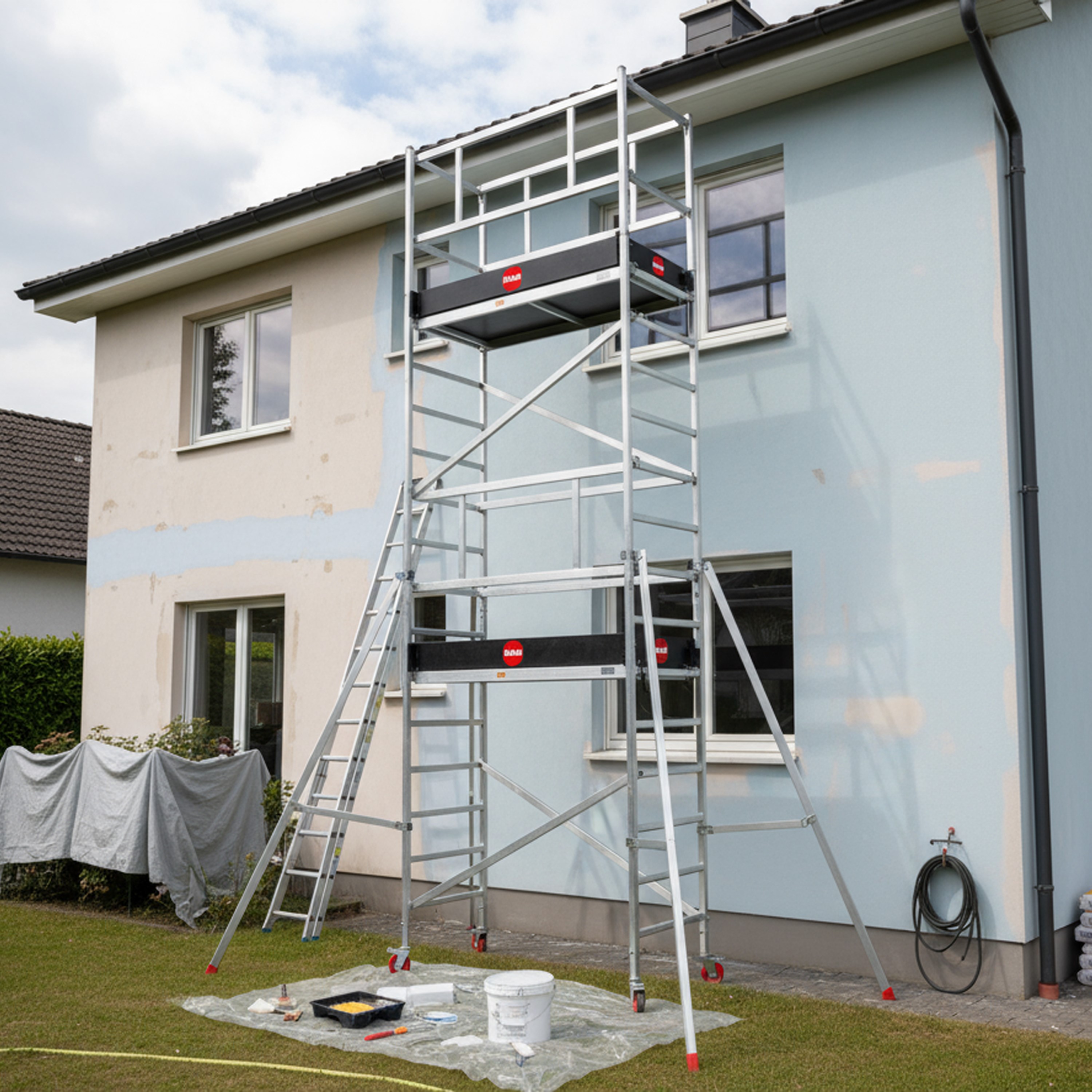 Hailo Andamio EN1004 modular de aluminio Expert Pro con ruedas telescópicas (Andamio móvil modular de aluminio altura de trabajo hasta 7,40 m EN 1004-1)
