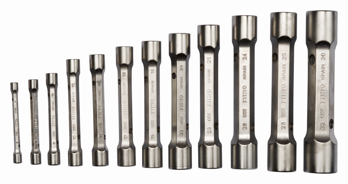 - Juego de 12 piezas en un estuche con llaves de tubo de 6 × 7 a 30 × 32 mm.