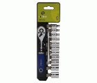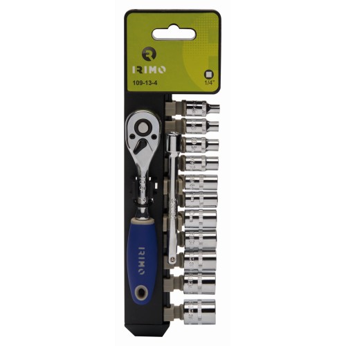 Carraca de tipo pera de 1/4" con 10 vasos hexagonales y alargadera | 109-13-4