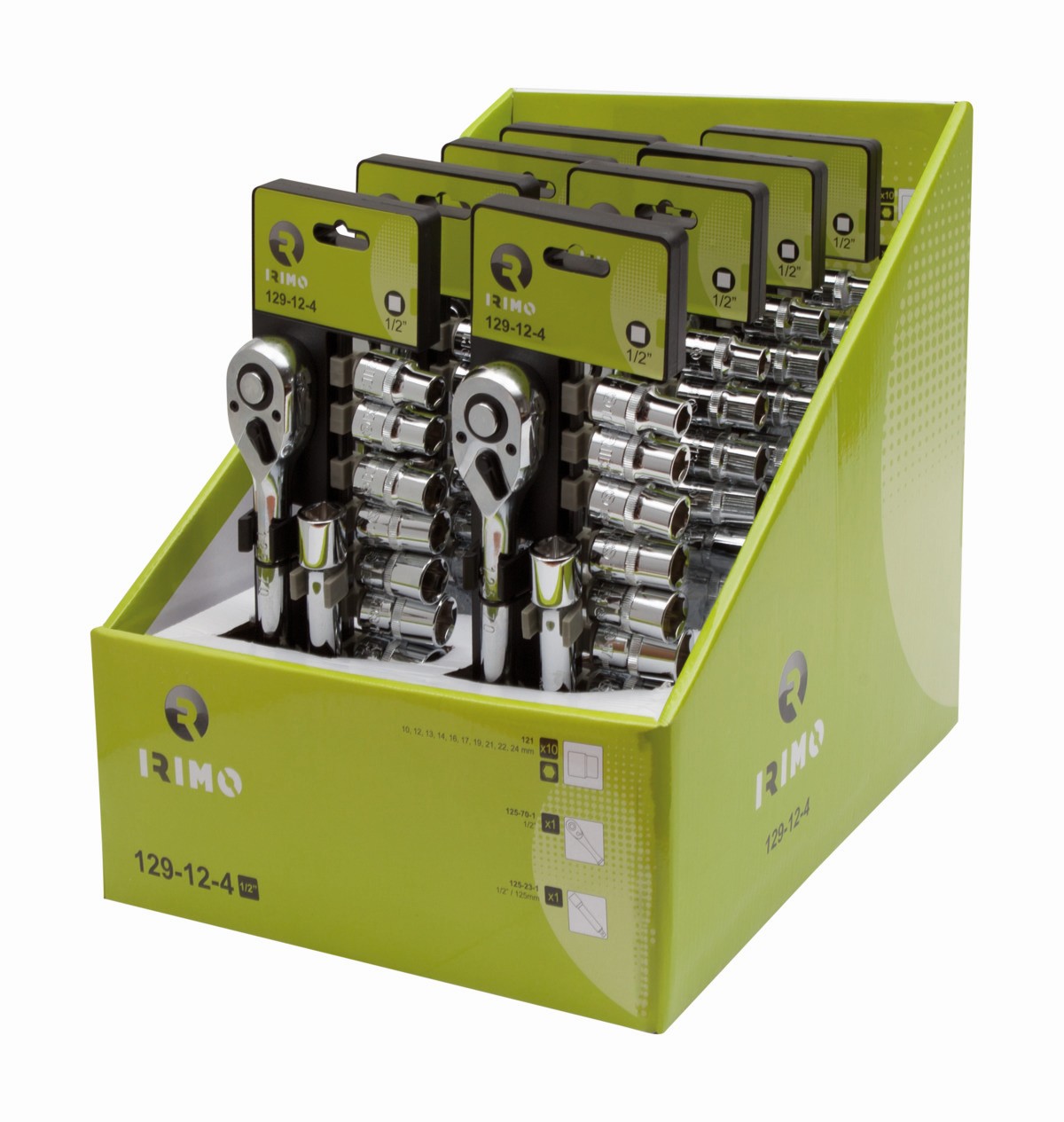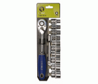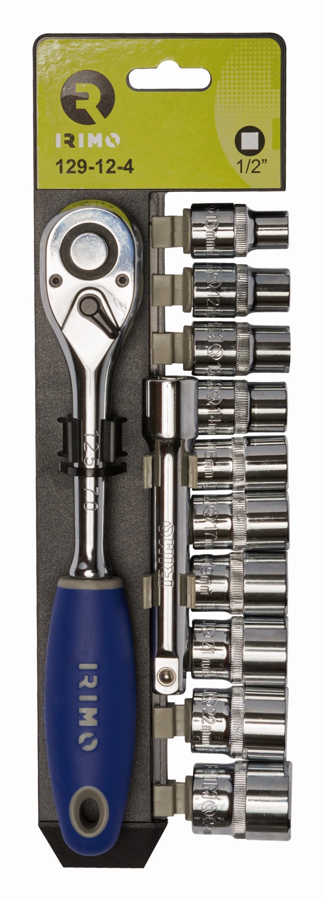 Carraca de tipo pera de 1/2" con 10 vasos hexagonales y alargadera | 129-12-4