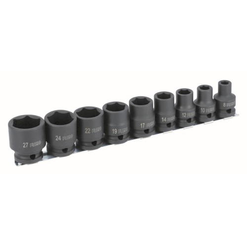 - Juego de vasos de impacto de 1/2", 9 piezas.
