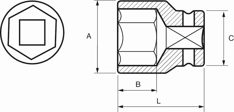 Vasos de impacto hexagonales de 3/4", mm | 173-17-2/173-60-2