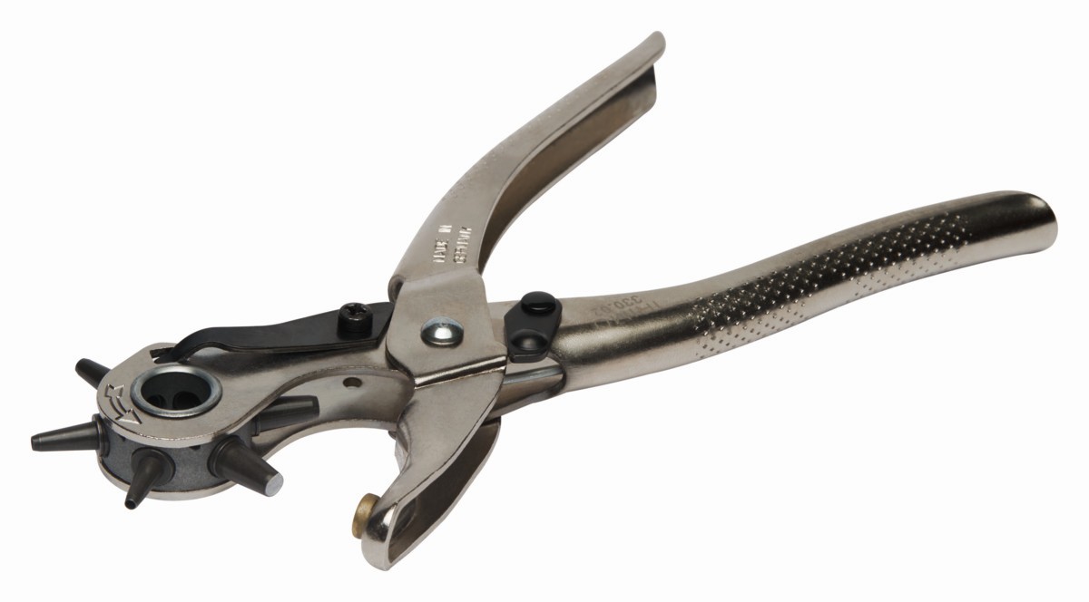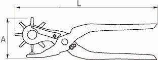 - Rueda que gira para perforar agujeros en cuero, goma, plástico, lona, juntas y otros materiales similares.