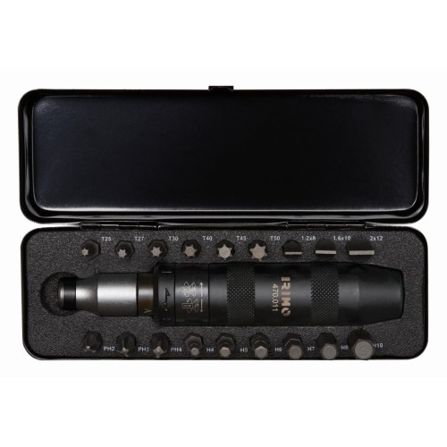 - Incluye 1 destornillador a golpe, 18 puntas y 1 adaptador portapuntas.