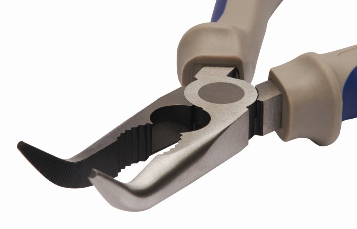 - Alicates de boca semirredonda con punta curvada.