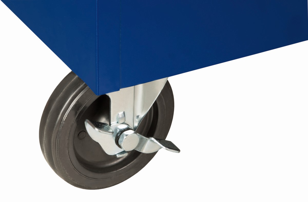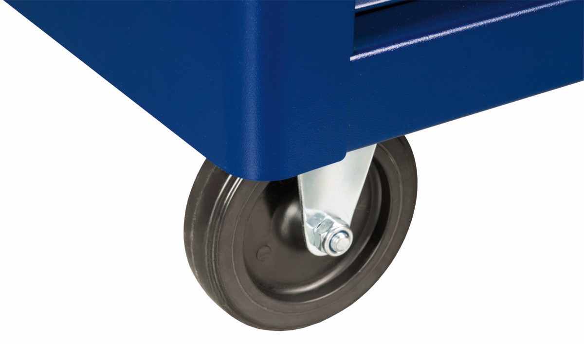 - Ruedas de 125 × 30 mm con goma que no deja marcas en las superficies: 2 ruedas fijas y 2 ruedas giratorias.