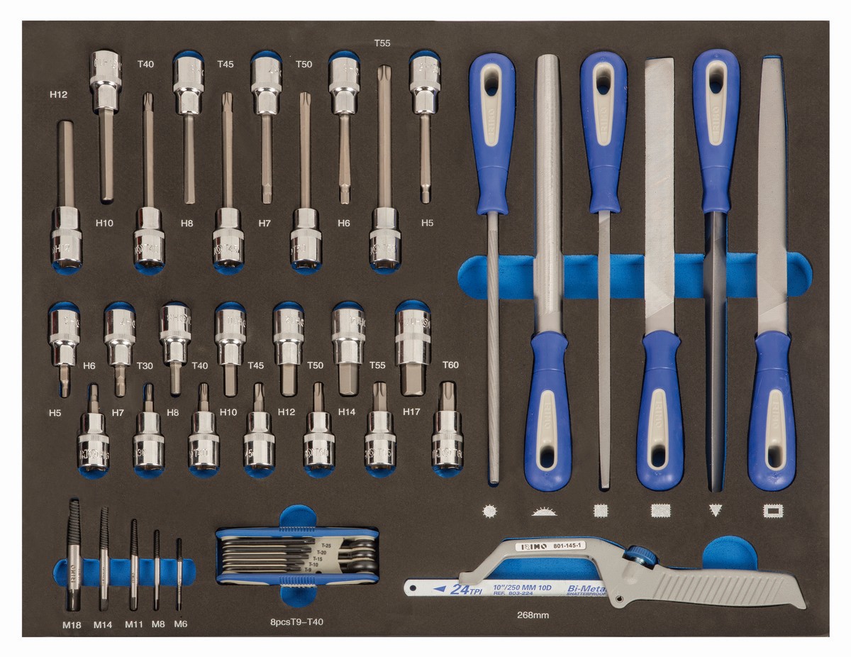 - Destornilladores, llaves, herramientas de golpeo y corte, limas, alicates, juego de puntas y juegos de vasos.