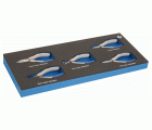 - Incluye: Alicates universales de boca semirredonda, corte diagonal, corte frontal y boca plana.