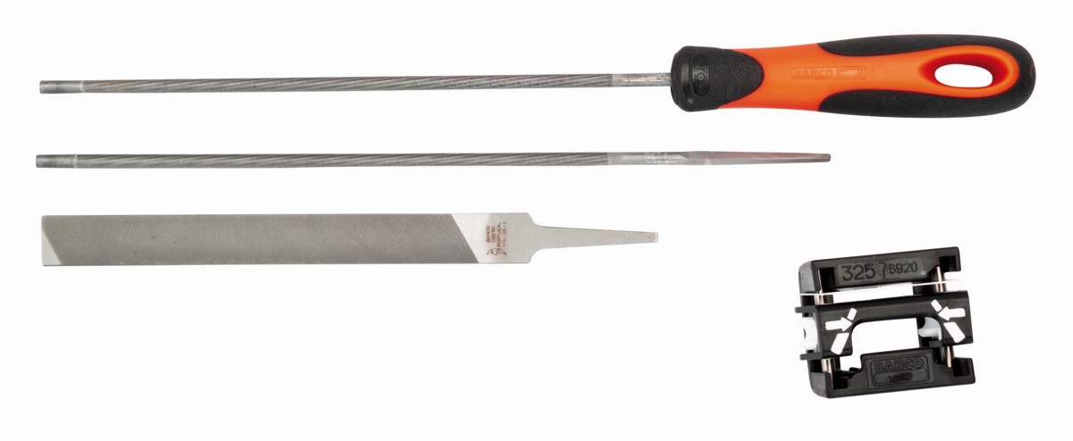 - Juego de 2 limas para cadenas redondas de 8" y una plana de 6" y guía de limado