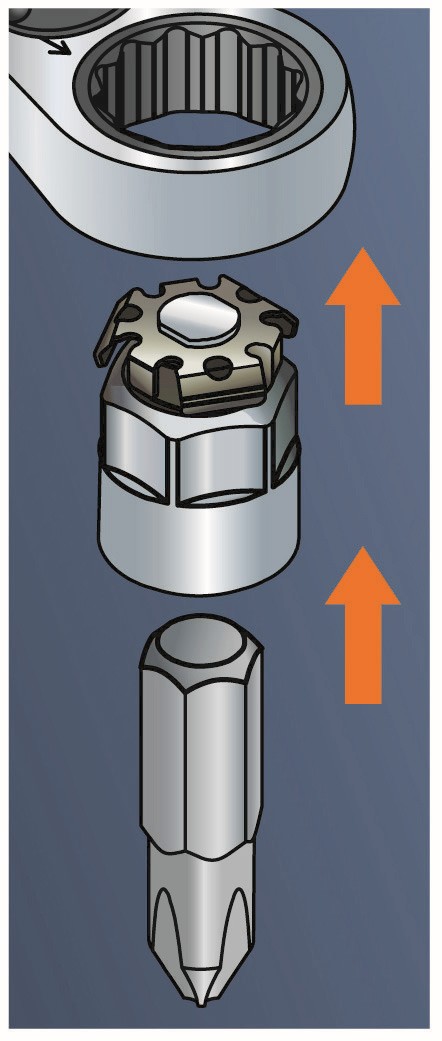 - Adaptador para puntas de 1/4" con anillo de contención