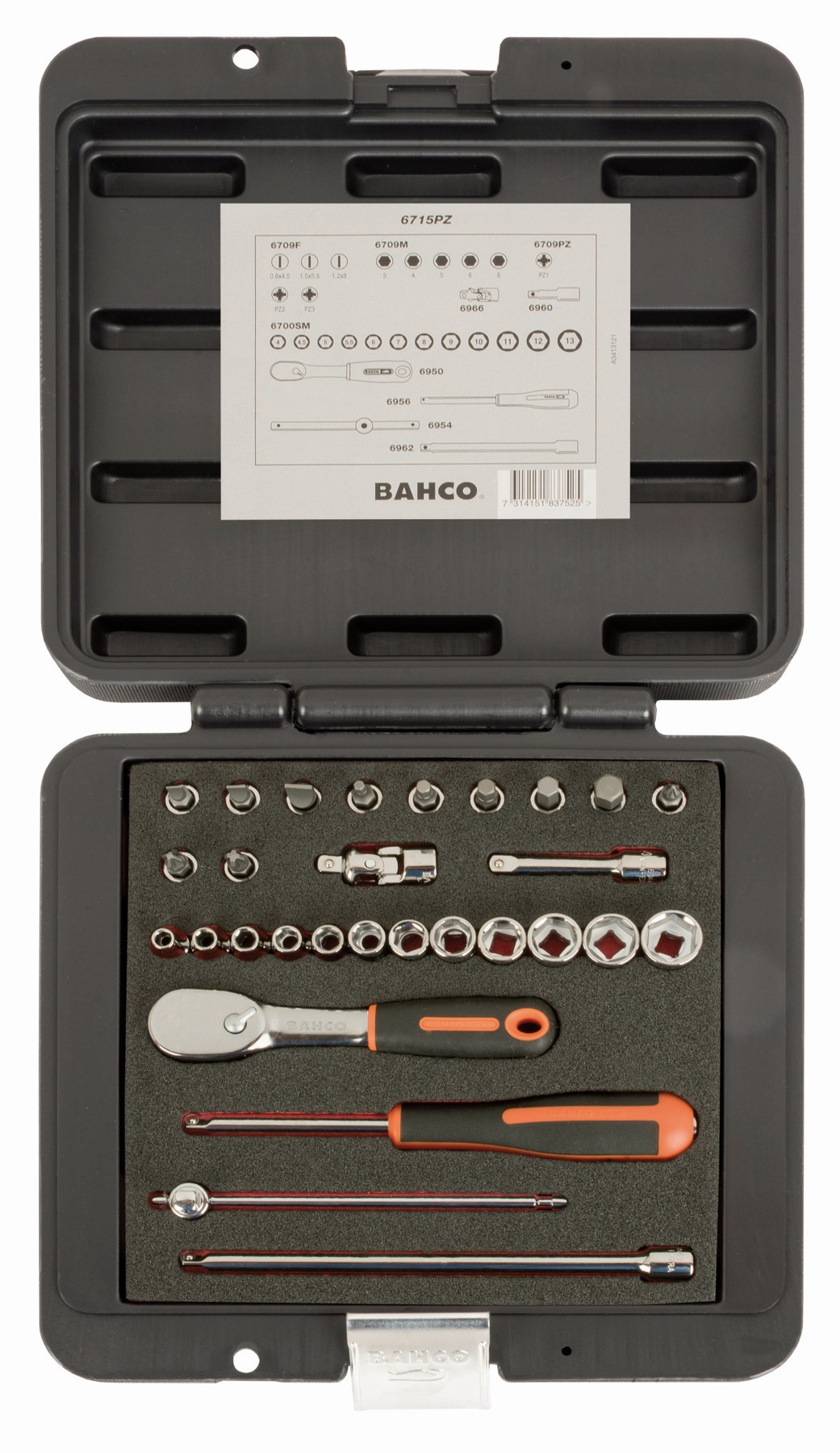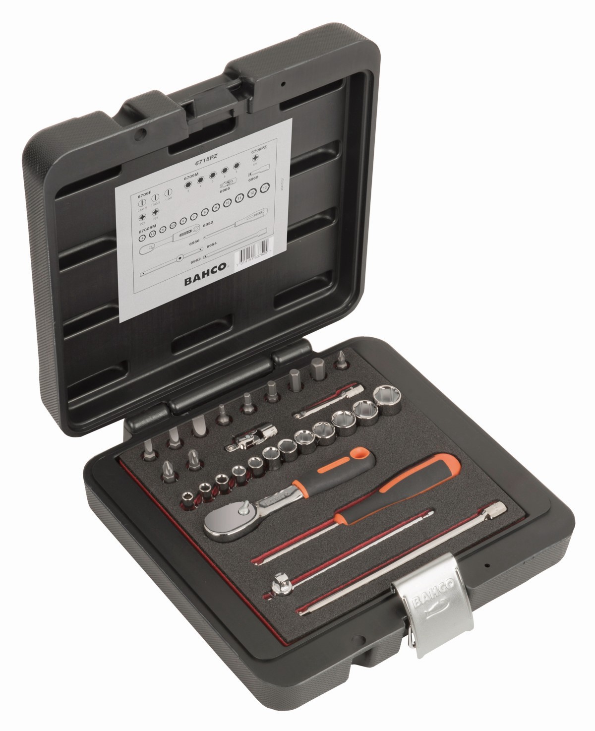 Juego de vasos con cuadrado de 1/4", con perfil hexagonal métrico y carraca con cabeza tipo pera/llaves de vaso | 6715PZ