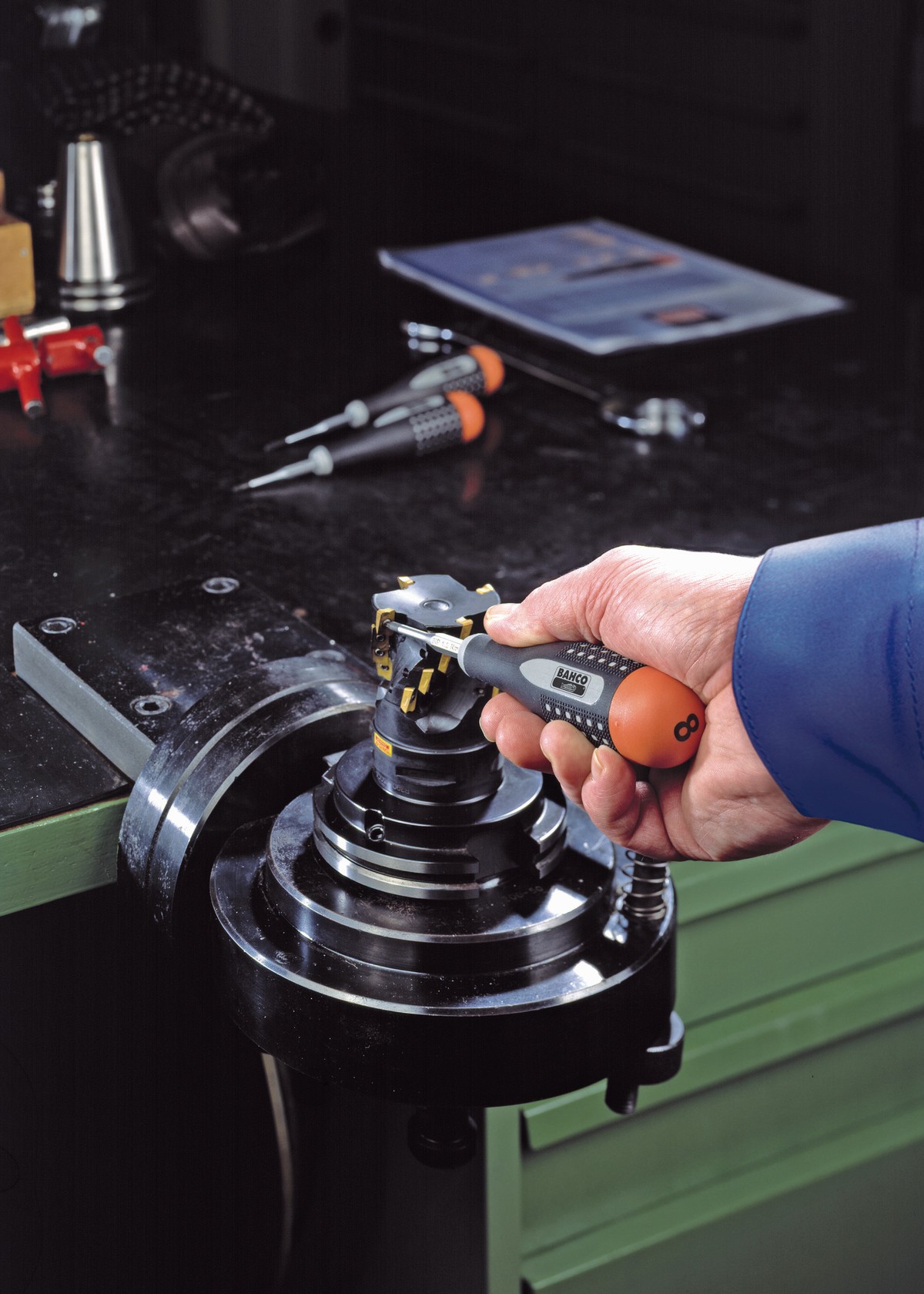 - Diseñado para el correcto ajuste de tornillos de precisión, por ejemplo en máquinas CNC, a pares de 0.6, 0.9, 1.2, 1.4, 2.0 y 3.0 Nm