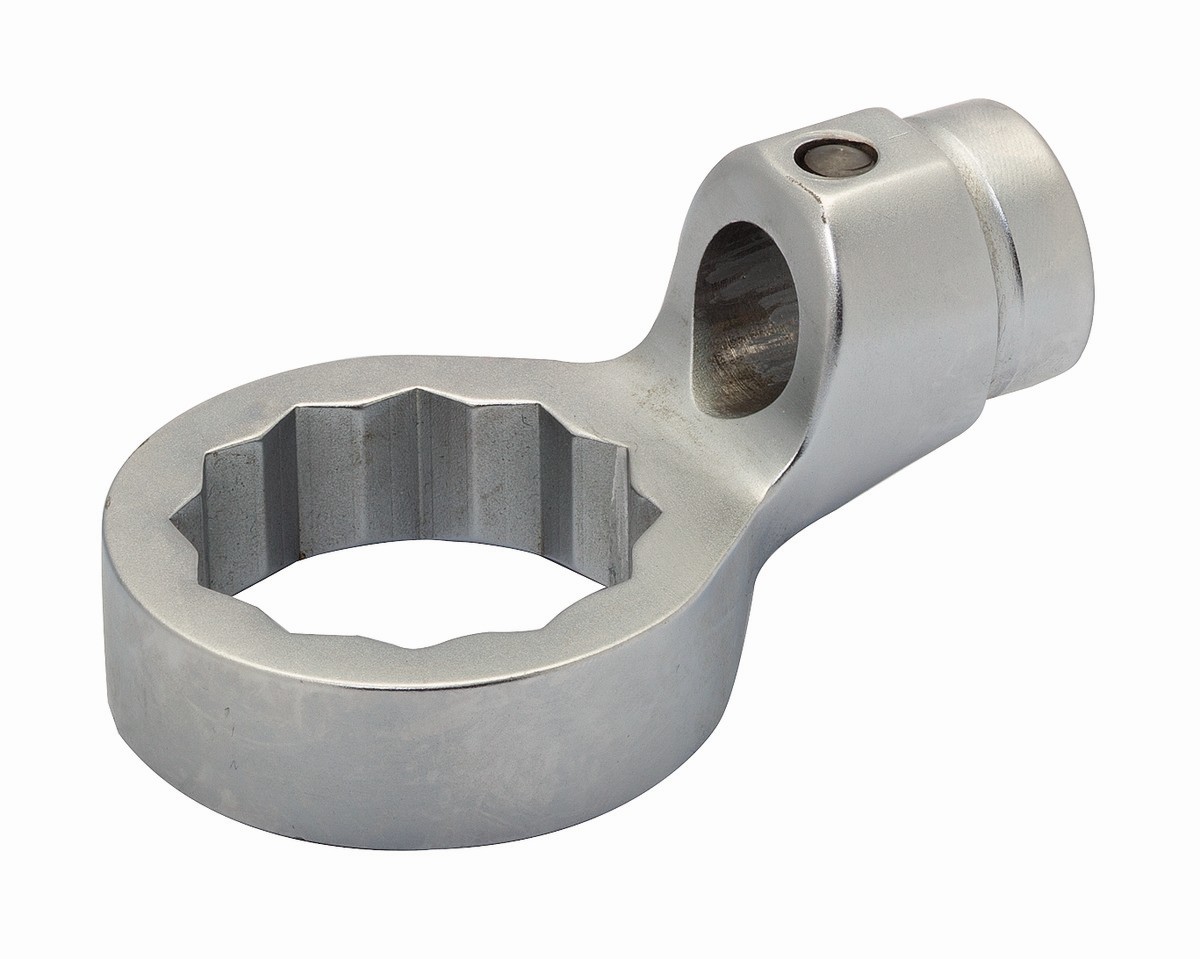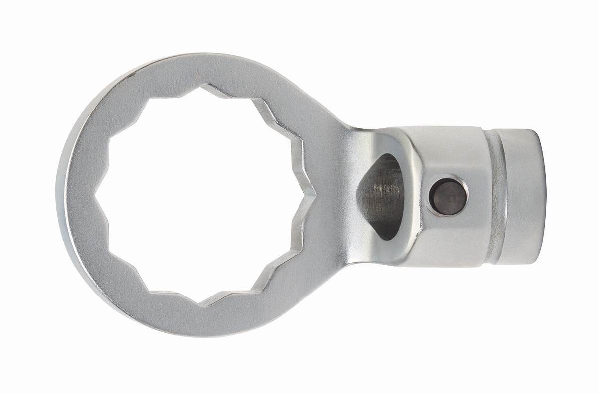 - La cabeza está fijada a la llave dinamométrica con un pin pasador de sujeción retráctil
