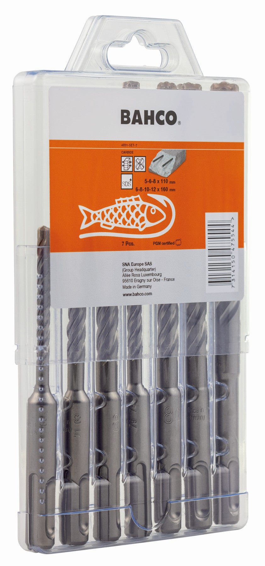 BAHCO Juego de brocas para hormigón armado SDS + 4C (7 piezas) | 4651-SET-7