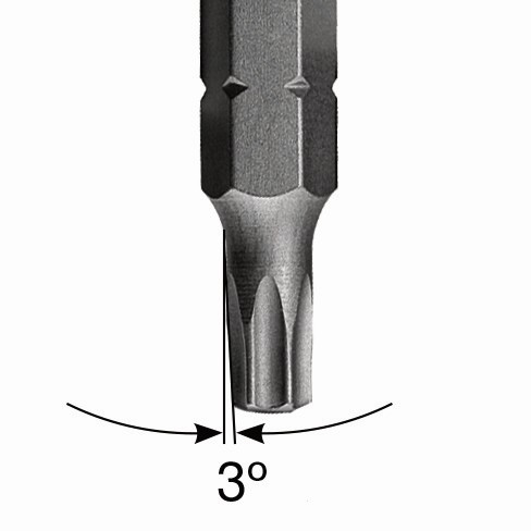 - El diseño TORX® cónico genera un efecto pellizco para ofrecer un mejor encaje en el tornillo y sujeta el tornillo con total seguridad en la punta.