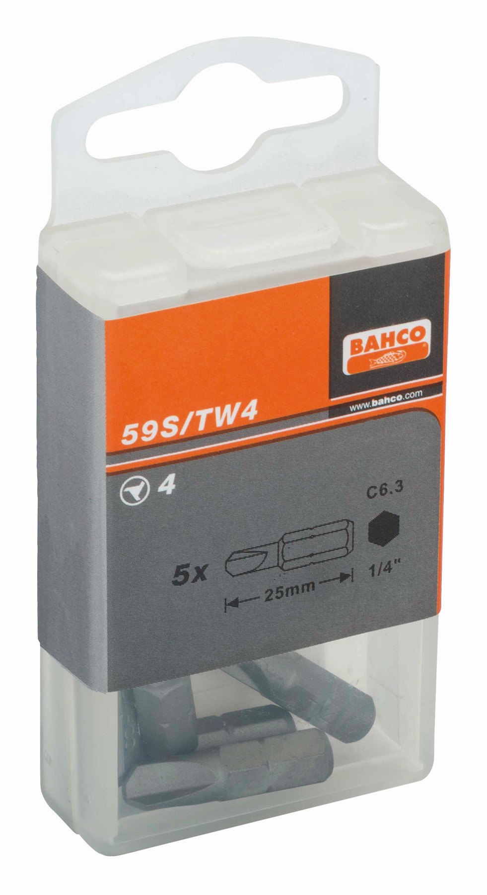 BAHCO Puntas estándar de 1/4" para tornillos TRI-WING de 25 mm (5 piezas/caja de plástico) | 59S/TW