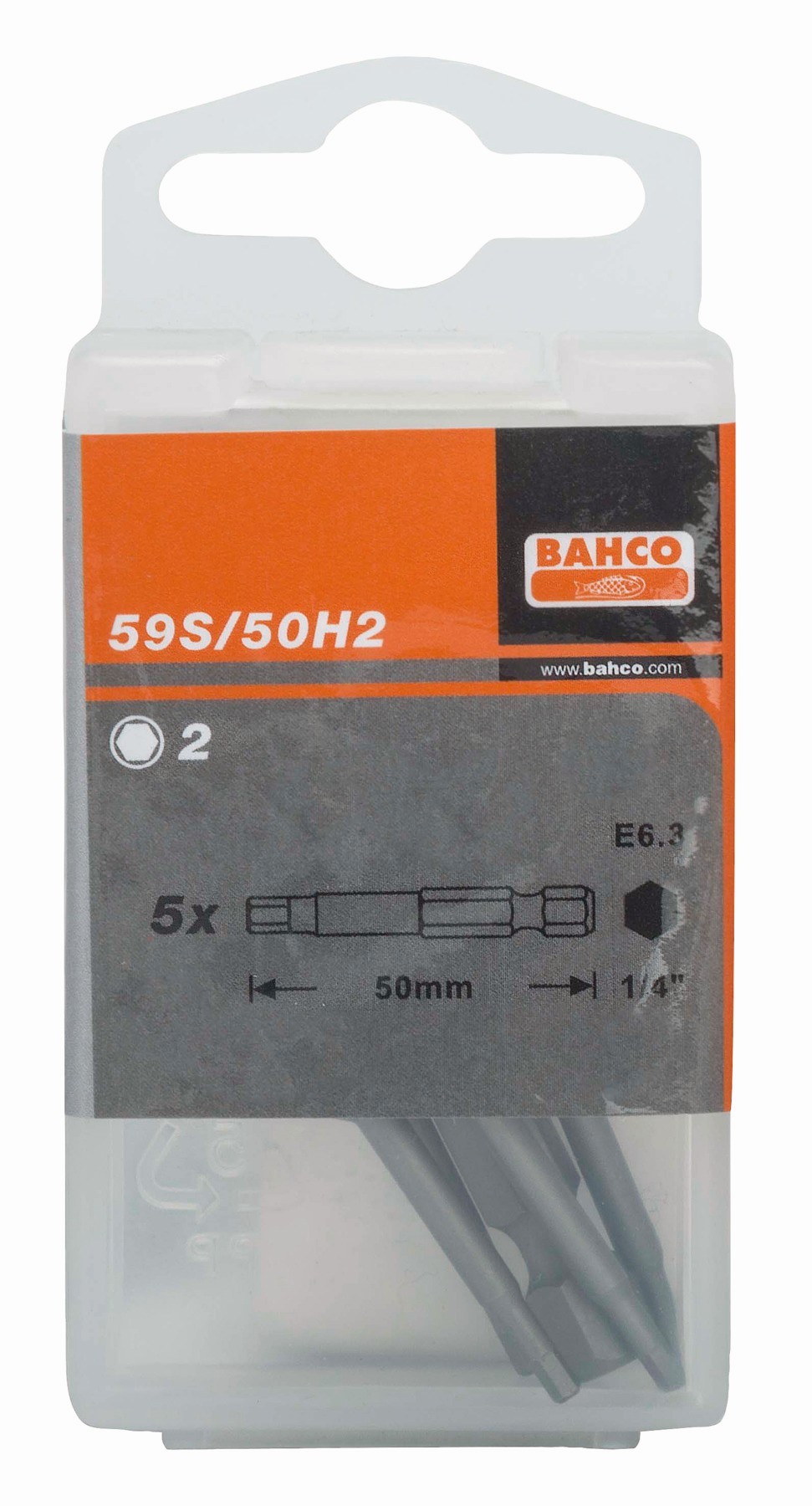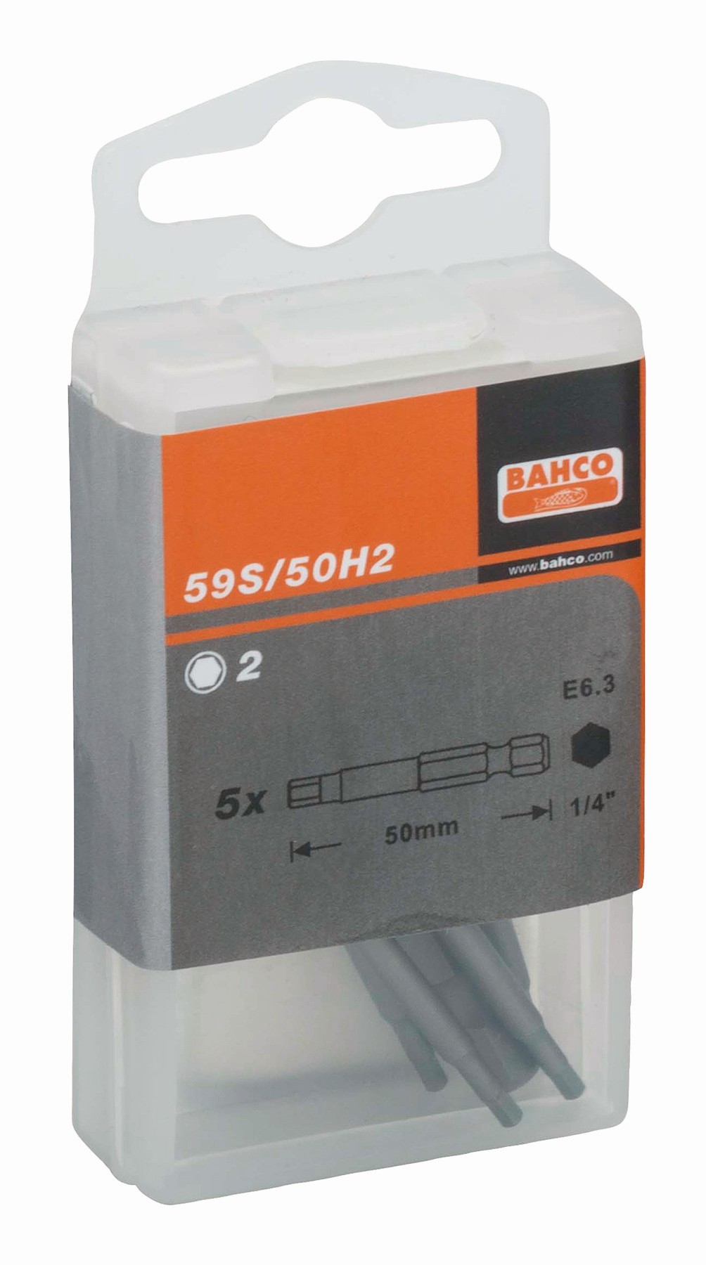 BAHCO Puntas de destornillador estándar de 1/4" para tornillo de cabeza hexagonal métrica de 50 mm | 59S/50H