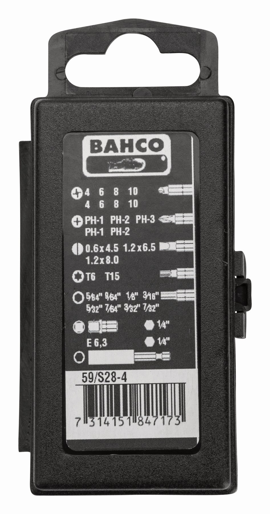 Juego de puntas estándar de 1/4" para tornillos ranurados/Phillips/hexagonales: 28 piezas | 59/S28