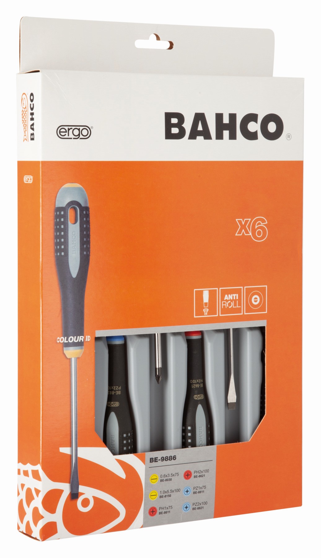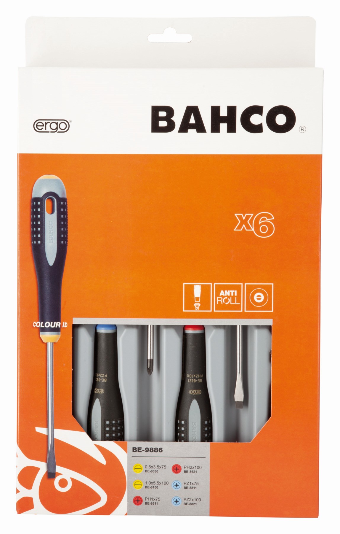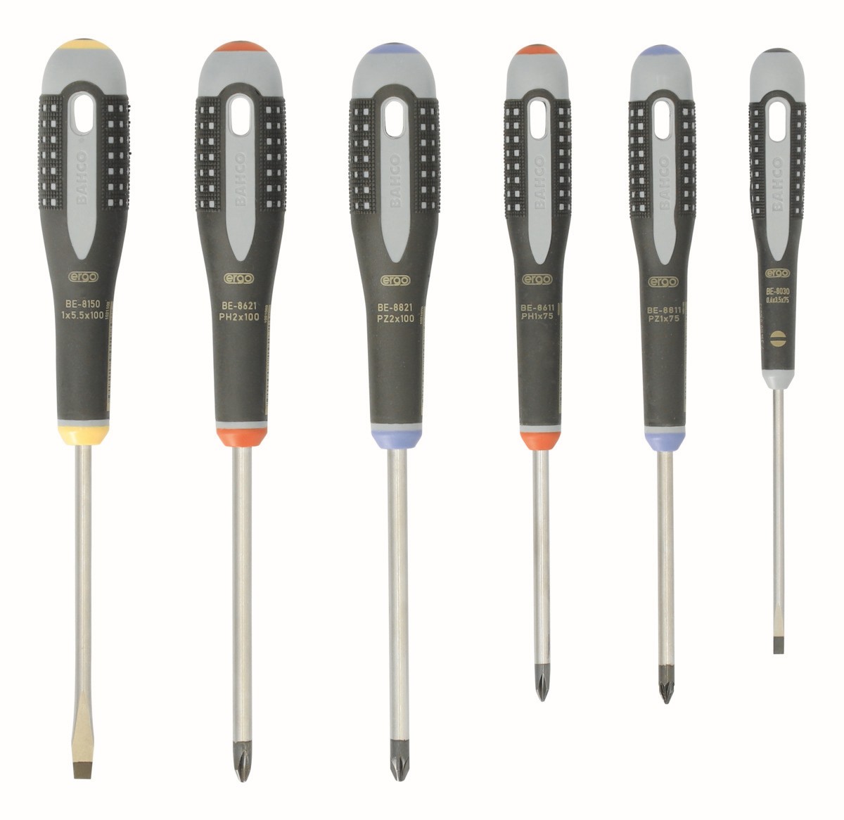 Juego de destornilladores ranurados/Phillips/Pozidriv ERGO™ con mango de goma, 3,5 mm x 75 mm/5,5 mm x 100 mm: 6 piezas | BE-9886