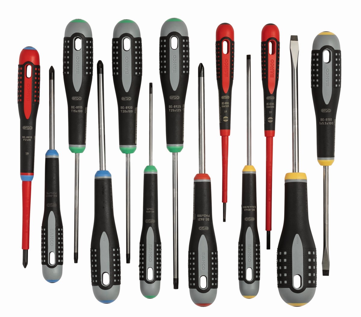Juego de destornilladores ranurados/Phillips/Pozidriv/TORX® ERGO™ con mango de goma: 13 piezas | BE-9875