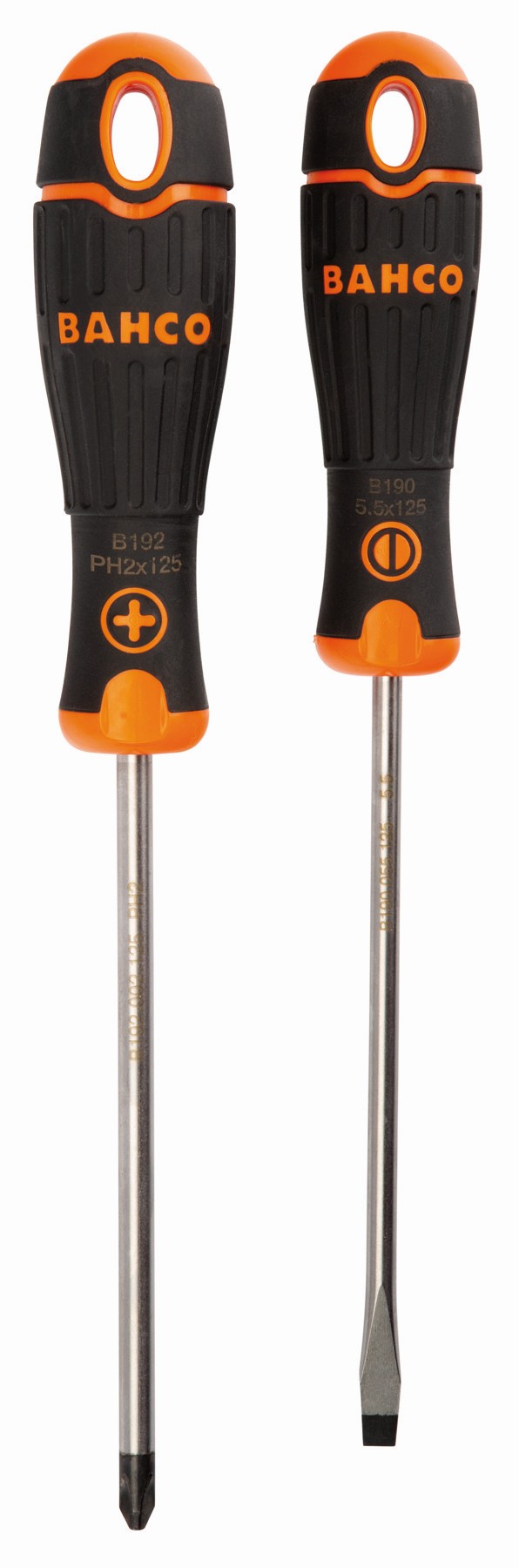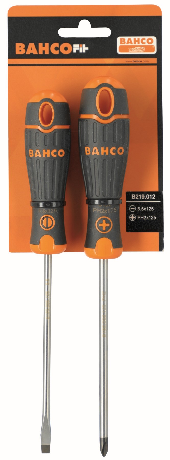 Juego de 2 destornilladores para ranurados y Phillips BahcoFit con mango de goma | B219.012