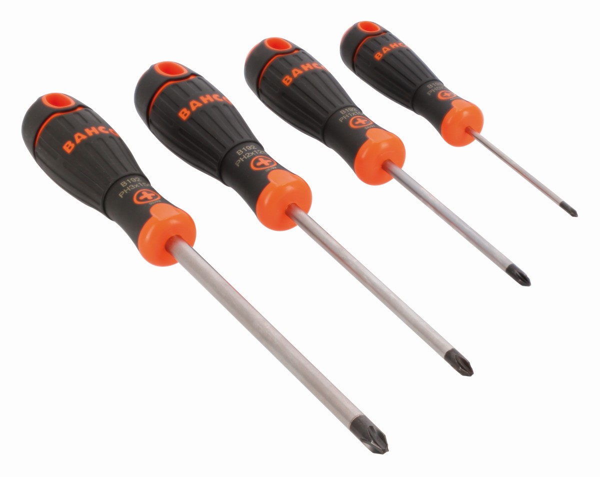 Juego de destornilladores Phillips BahcoFit con mango de goma - 4 piezas | B219.014