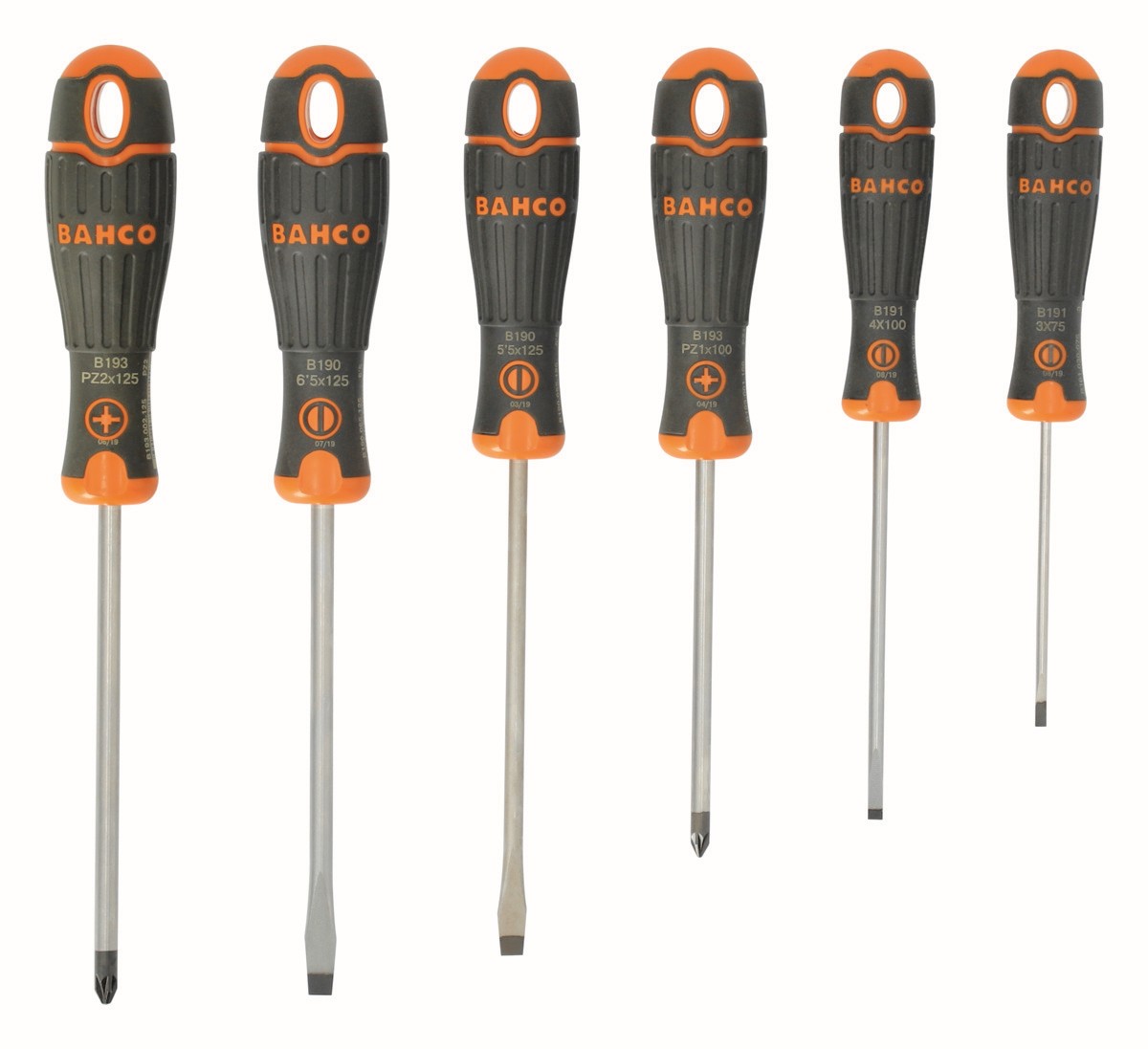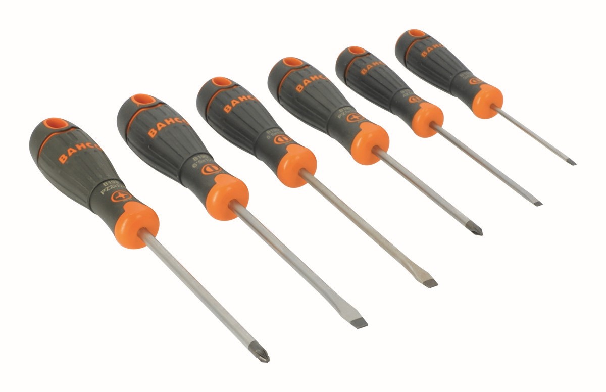 Juego de destornilladores ranurados/Pozidriv BahcoFit con mango de goma: 6 piezas | B219.016