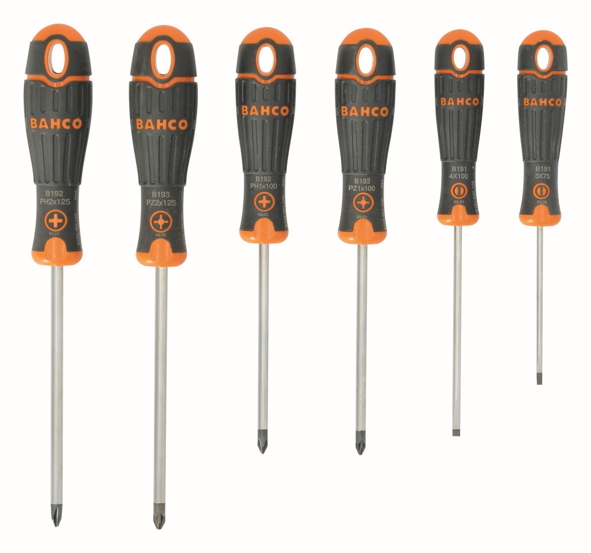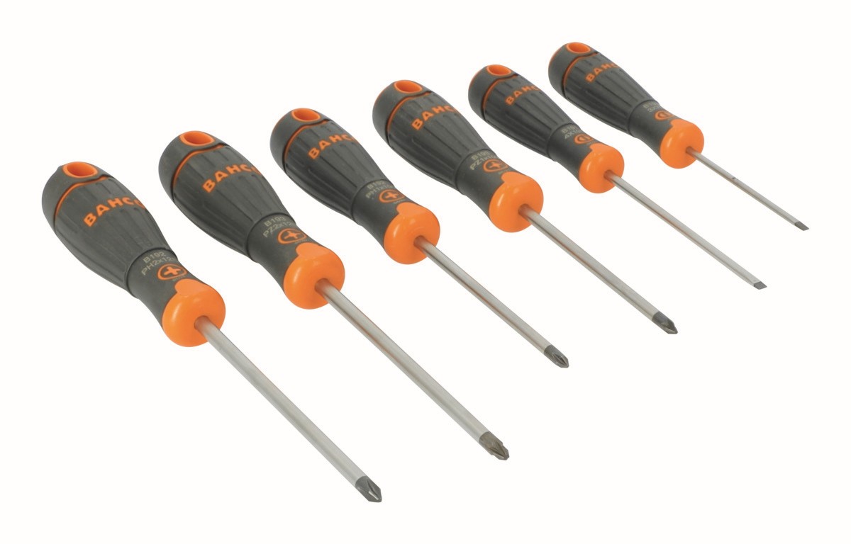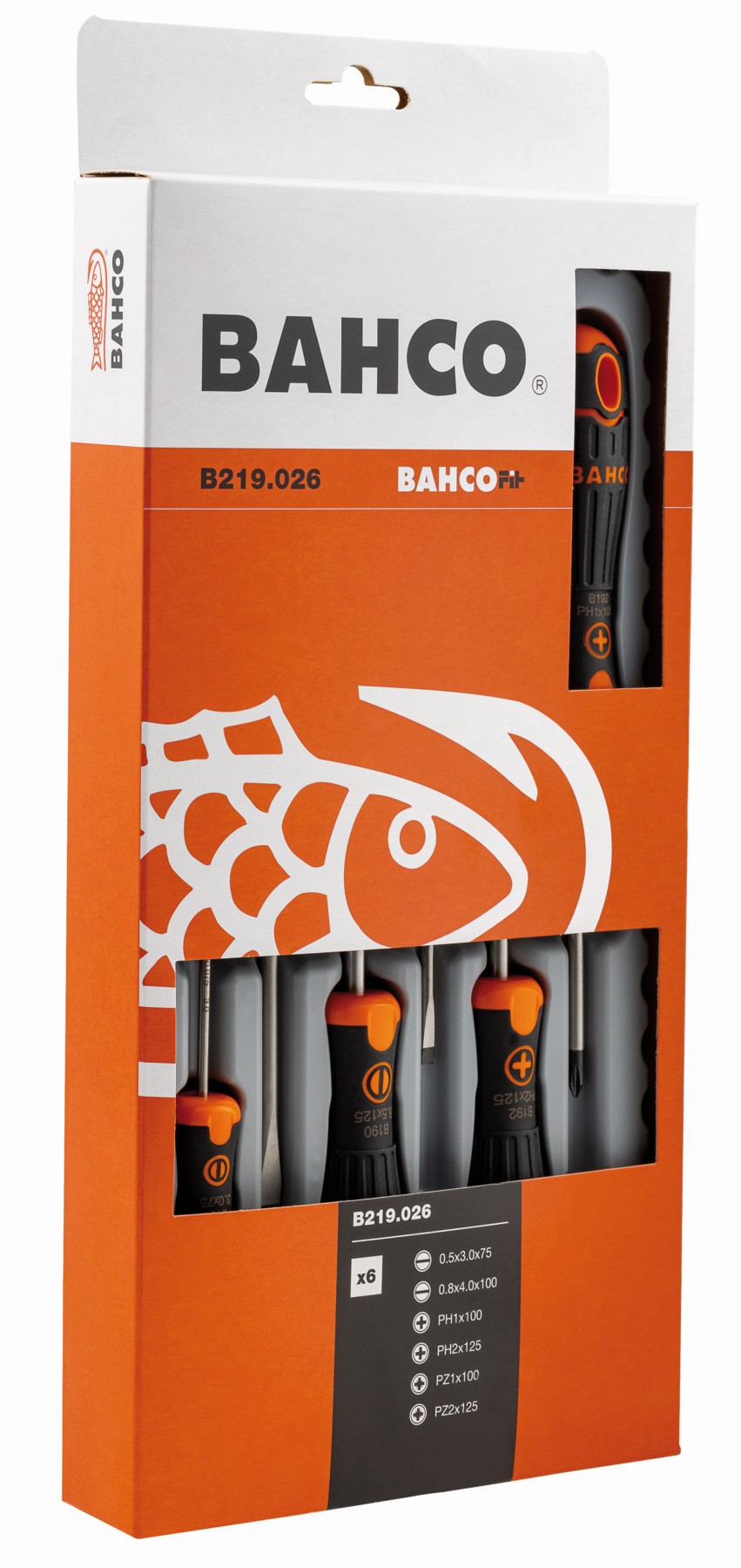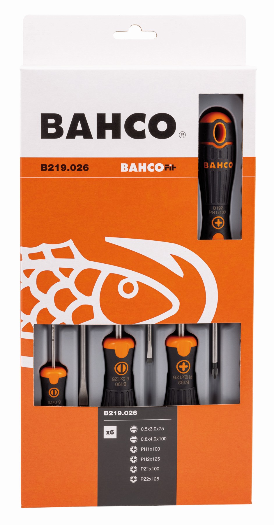 Juego de destornilladores ranurados/Phillips/Pozidriv BahcoFit con mango de goma: 6 piezas | B219.026