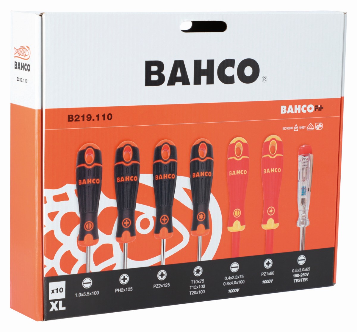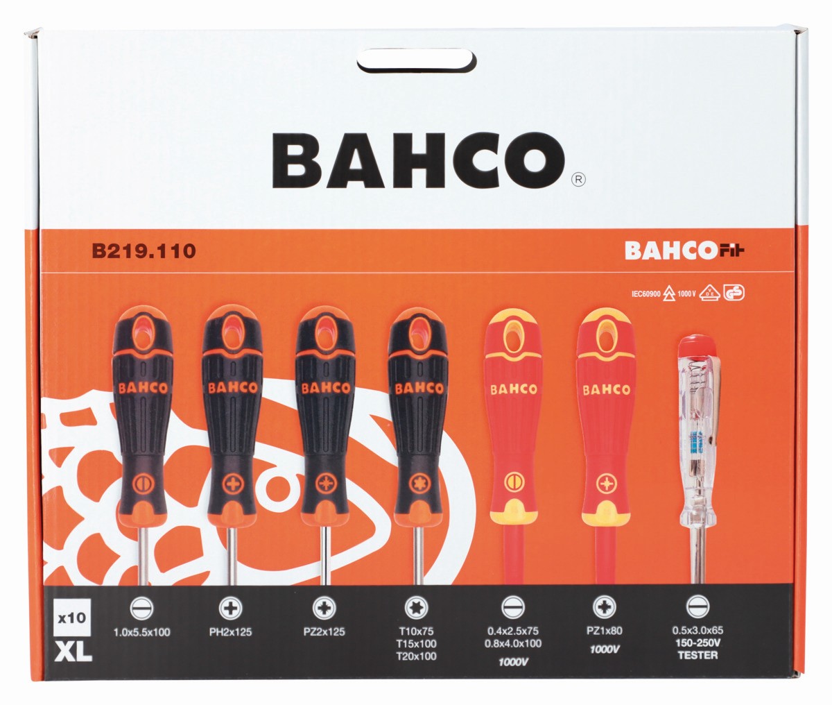 Juego de destornilladores ranurados/Phillips/Pozidriv/TORX® BahcoFit con mango de goma (10 piezas) | B219.110