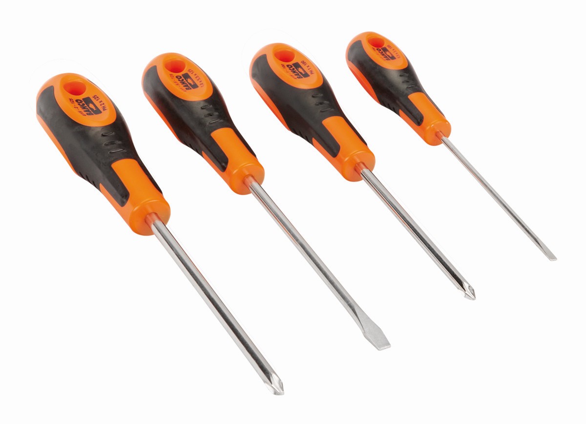 Juego de destornilladores ranurados/Phillips con agarre de goma - 4 unidades | 602-4-LA