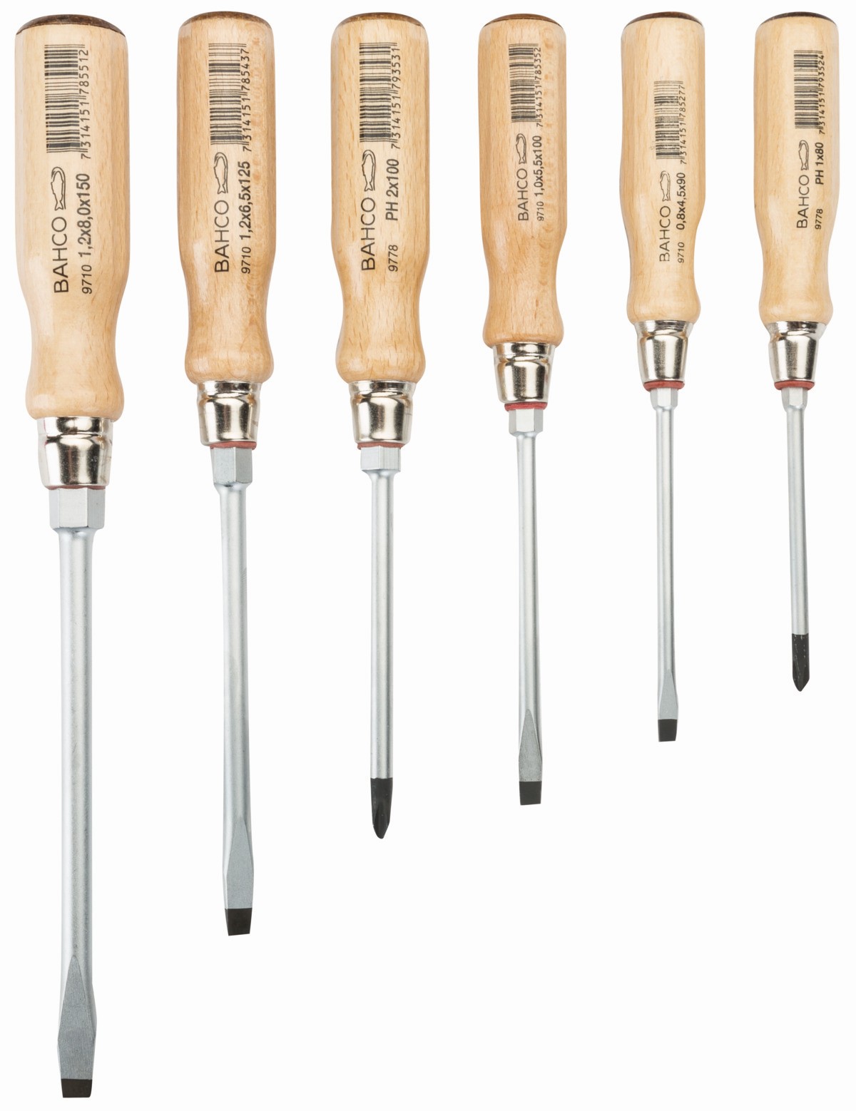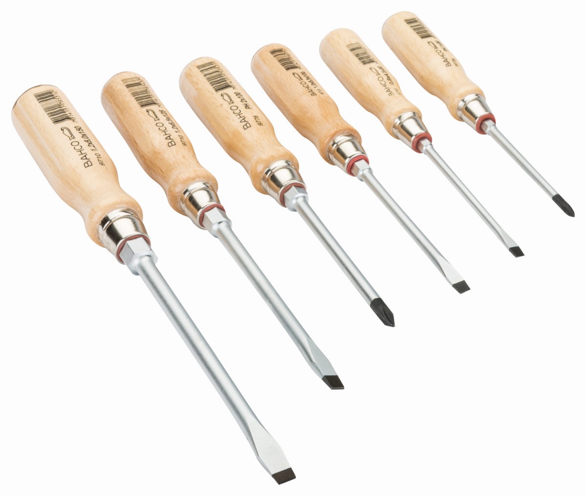 Juego de vasos de tuerca ranurada/Phillips con mango de madera - 6 unidades | 9710/S6