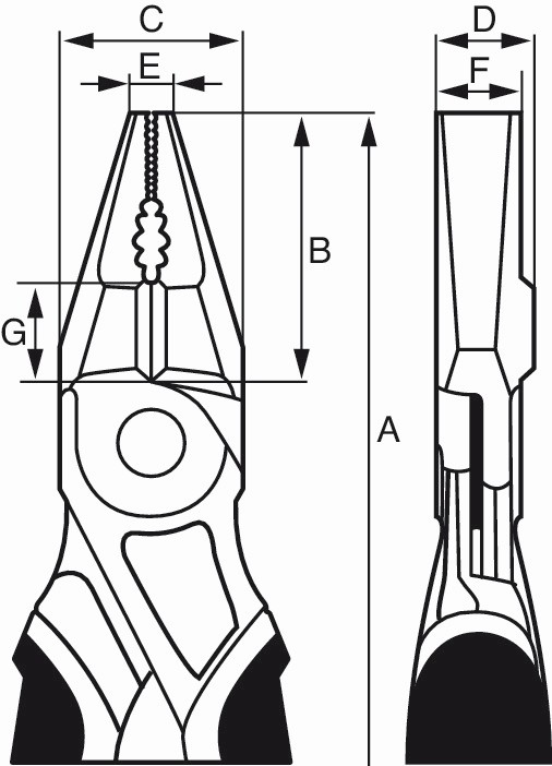 Alicates universales cromados, con mangos monomateriales. Filo de corte reforzado | 2630DC