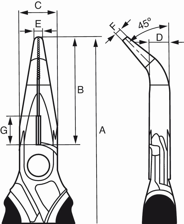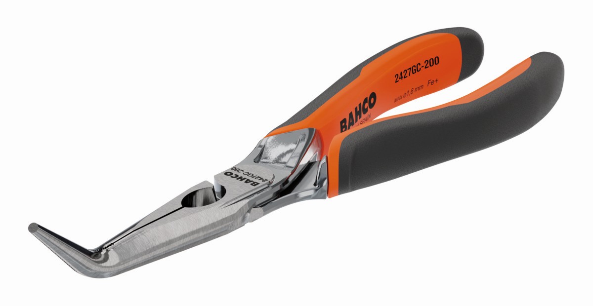 Alicates ERGO™ de boca semirredonda y punta curvada 45º, cromados, con mangos bi-materiales | 2427GC