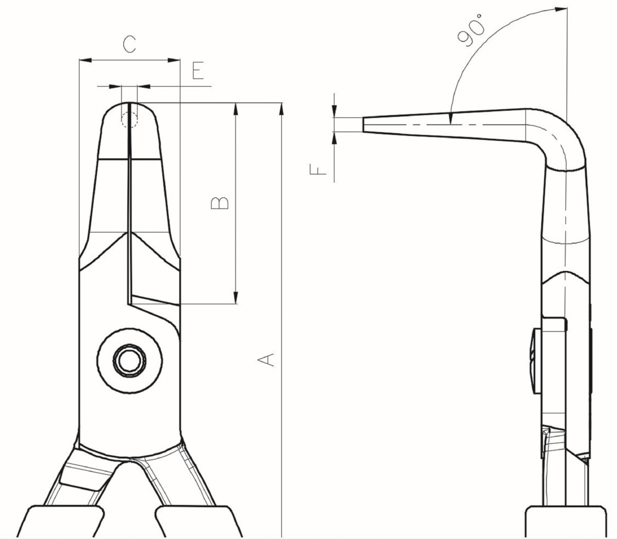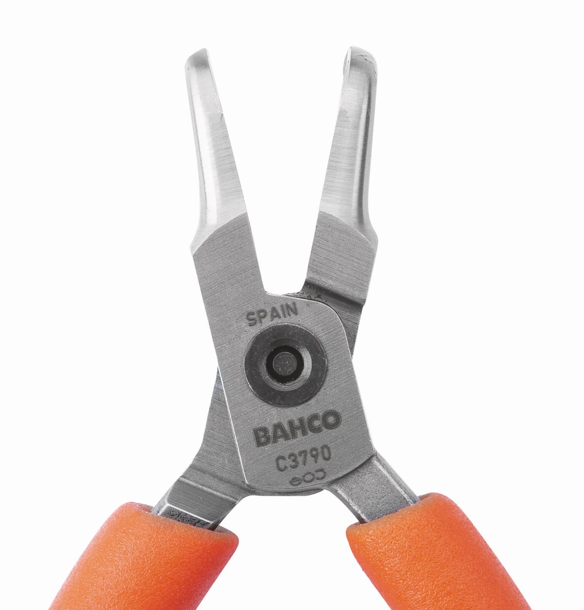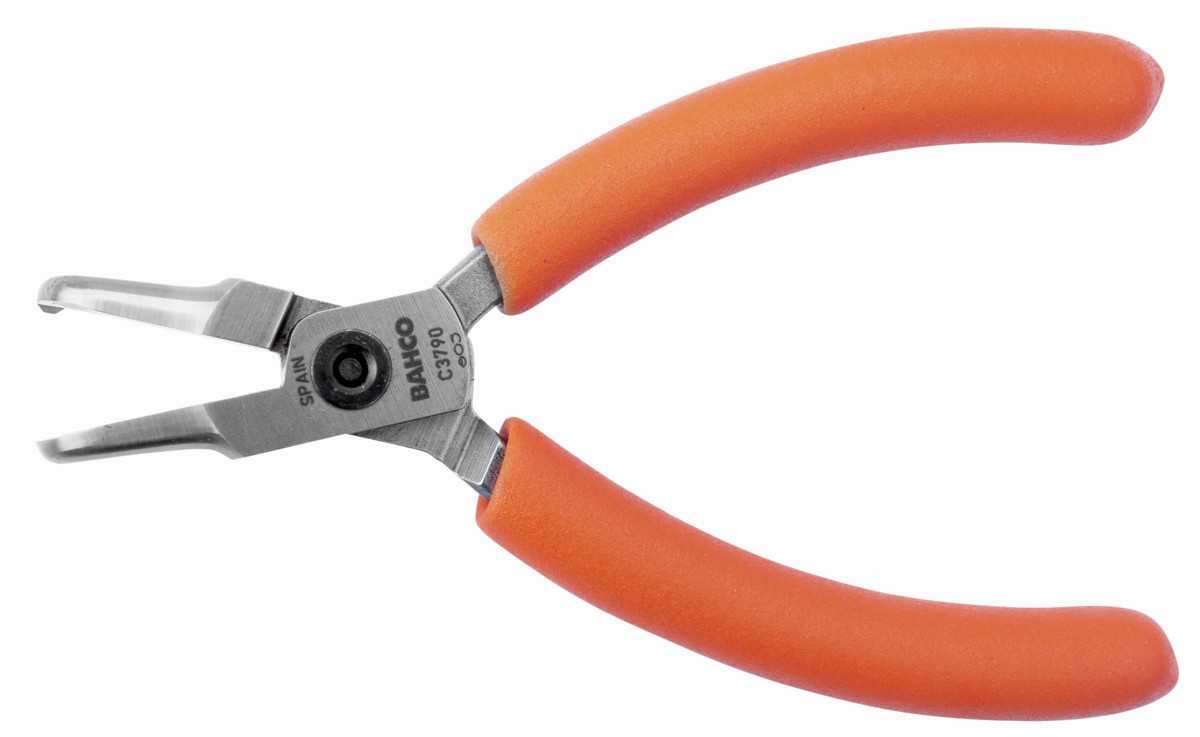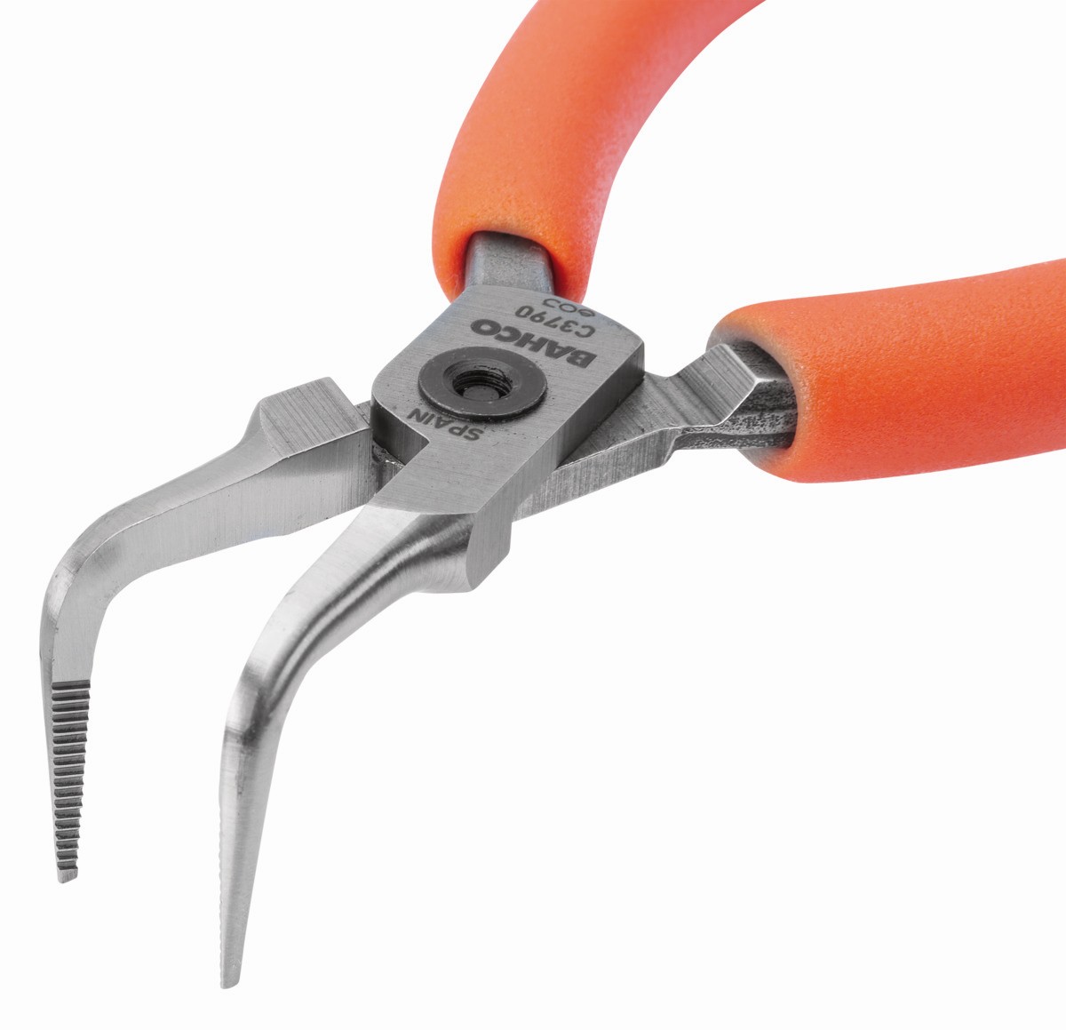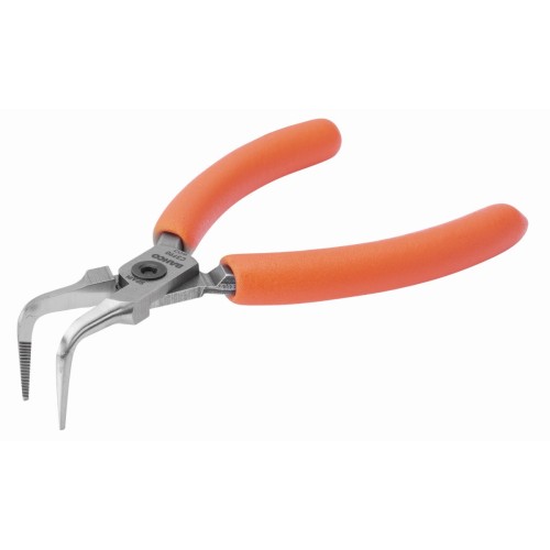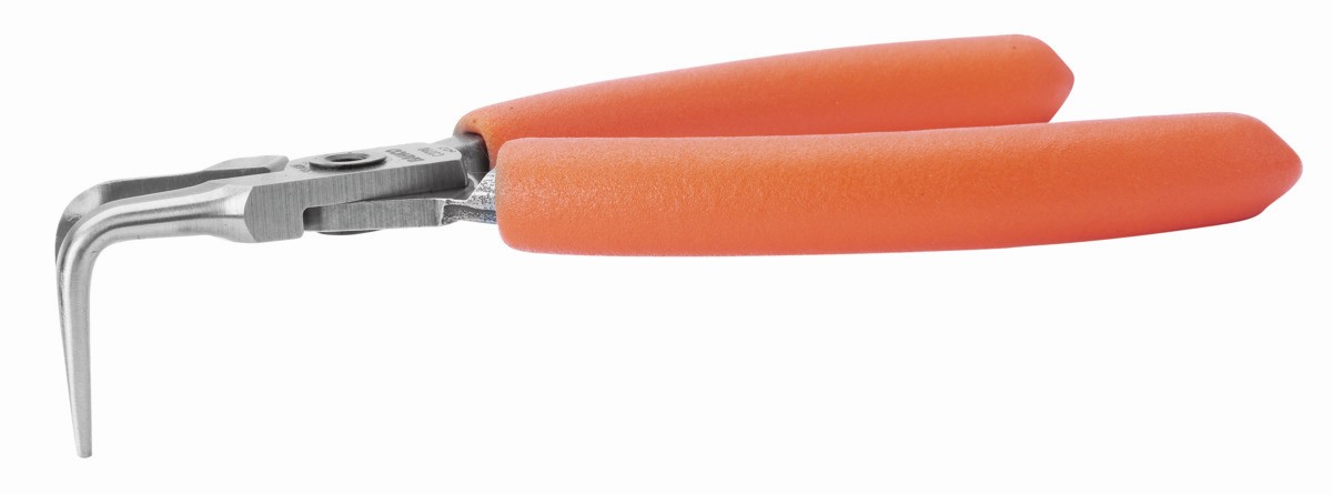 Alicates de boca semirredonda compactos con punta curvada a 90° y mangos de PVC naranjas | C3790