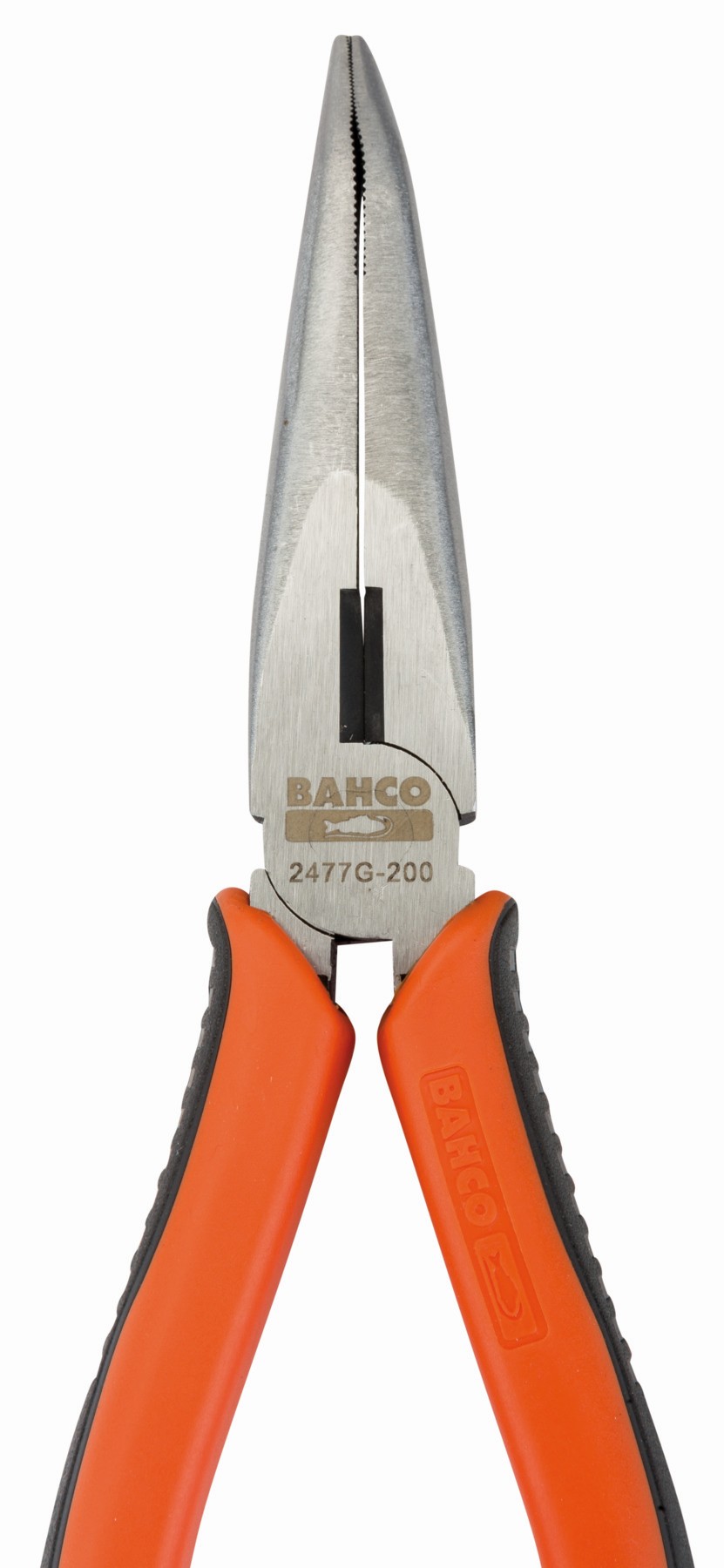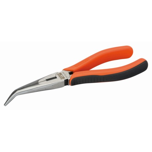 Alicates de boca semirredonda de punta curvada a 45° con mangos bi-componente y acabado lacado | 2477G-200