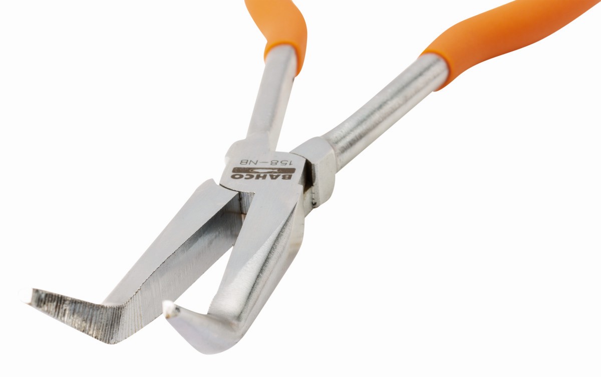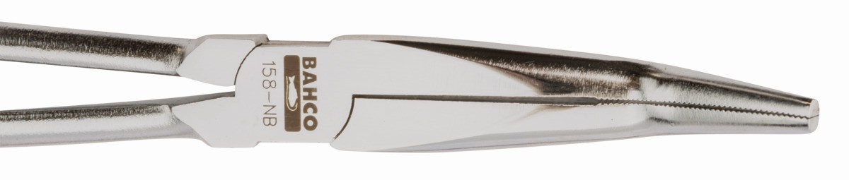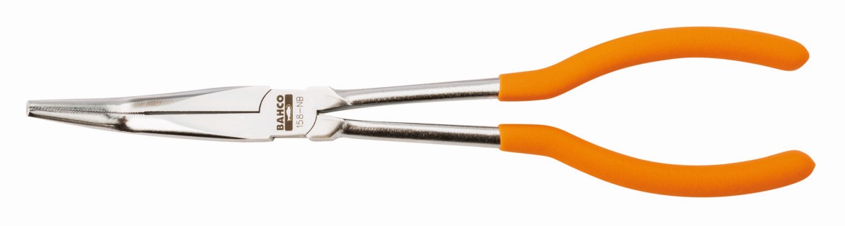 Alicates de boca semirredonda extralargos con punta curvada a 35°, mangos recubiertos de PVC y acabado pulido fino | 158-NB