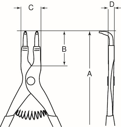 Alicates para arandelas exteriores con mordazas curvadas de 90° y acabado fosfatado | 2990
