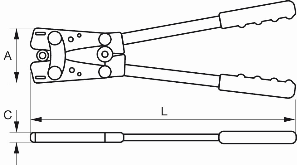 - Prensaterminales de gran efecto palanca para terminales grandes