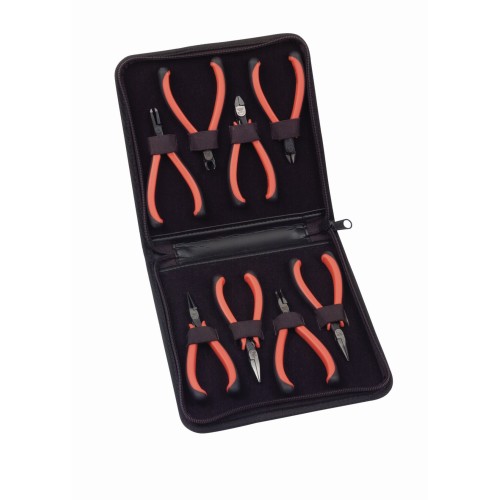 • Juego de alicates y cortantes para mecánica de precisión en un práctico estuche