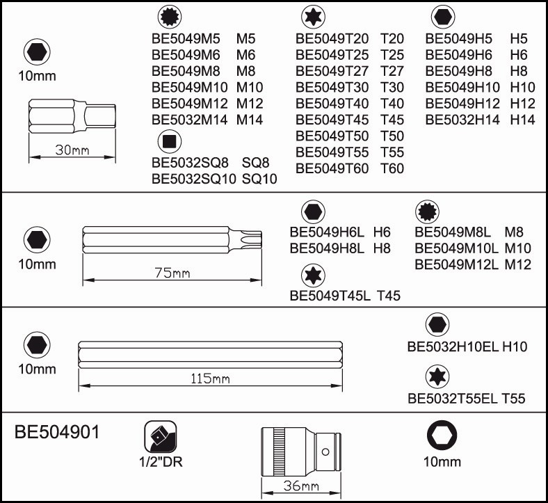 - Completo juego de puntas de 10 mm para el sector de la automoción