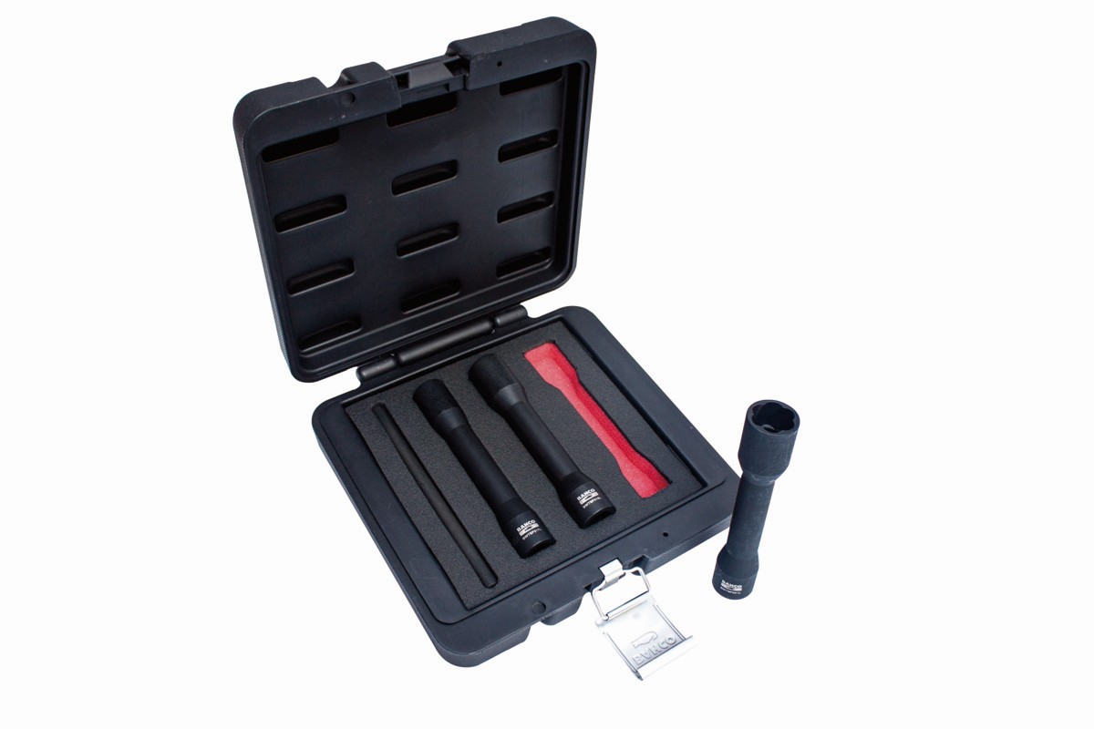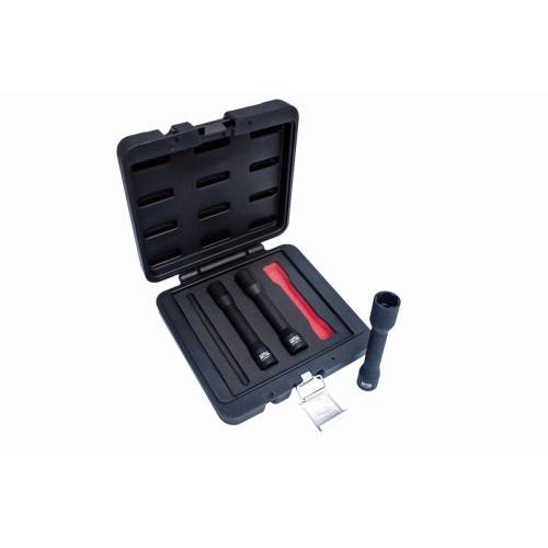 - Juego de vasos helicoidales extralargos diseñados para aflojar tuercas y tornillos dañados y, especialmente, para asegurar tuercas de rueda