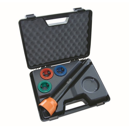- Gracias a los 3 modelos de cajas adaptables esta herramienta cubre la mayor gama de diferentes formas y tamaño de rótulas axiales de un diámetro de 28 mm a 45 mm