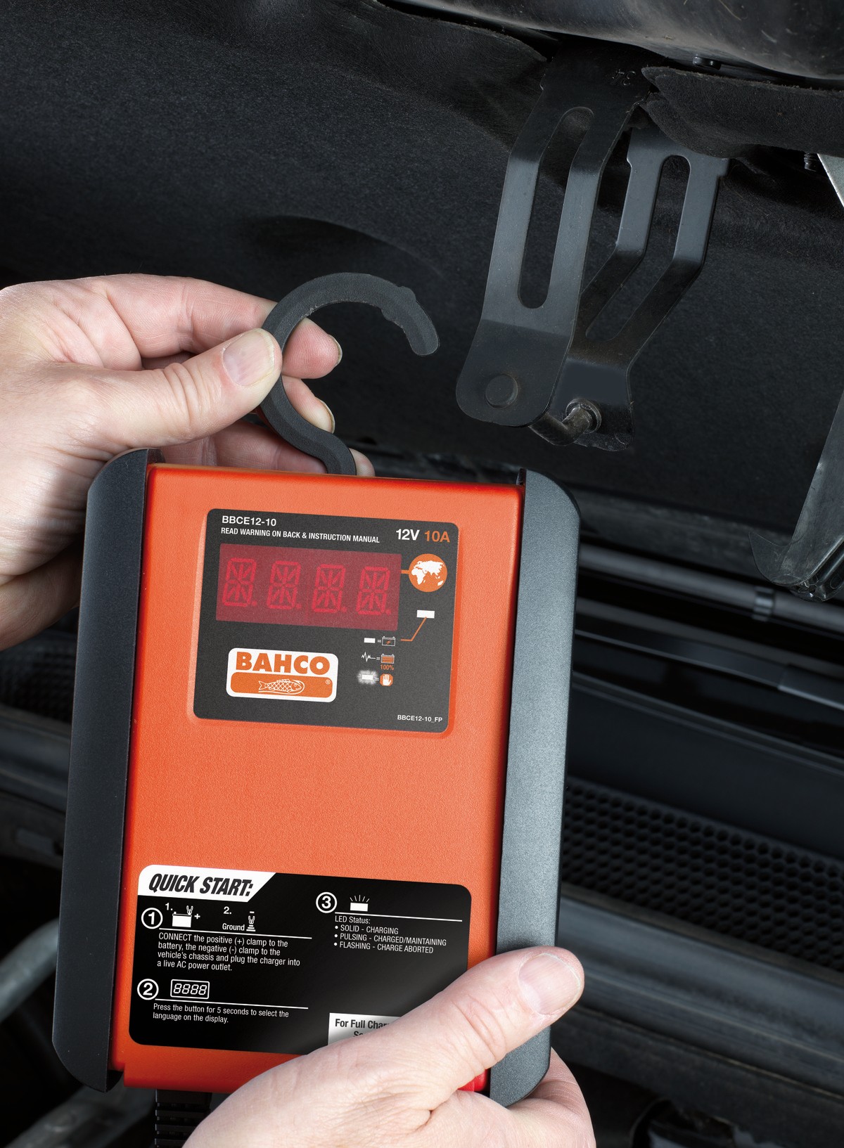 - Contenido de la caja: mantenedor/cargador de 24 V 10 A, pinzas con conexionado independiente, arnés de anillas para conexión rápida al cargador y manual del usuario