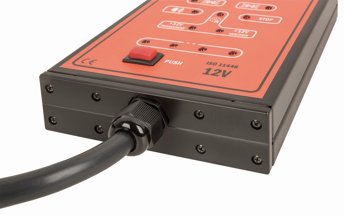- Ofrece simulación de las cargas de las lámparas. Esto significa que se puede utilizar para probar vehículos equipados con un sistema llamado (dependiendo del fabricante) "check control", que detecta las lámparas fundidas y/o controla la presencia del remolque conectado