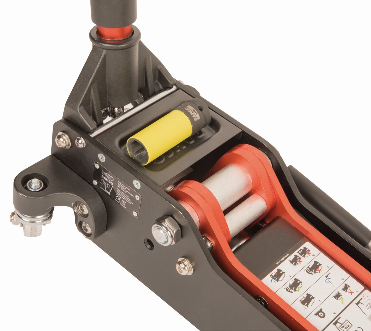 - Gato hidráulico de 1,5T con una estructura de aluminio 100 % para mantenimientos en carretera y carreras.