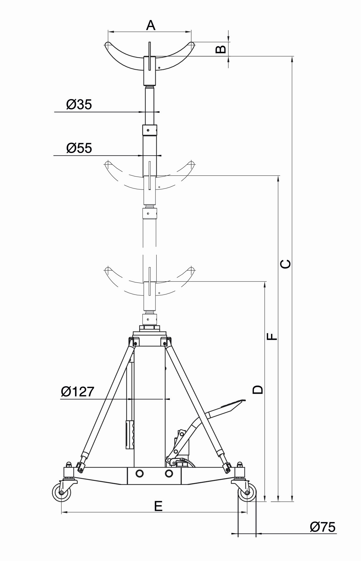 - Gato de transmisión para 1000 kg que se utiliza en fosos y debajo de vehículos elevados para eliminar, instalar o transportar cajas de cambios de forma segura