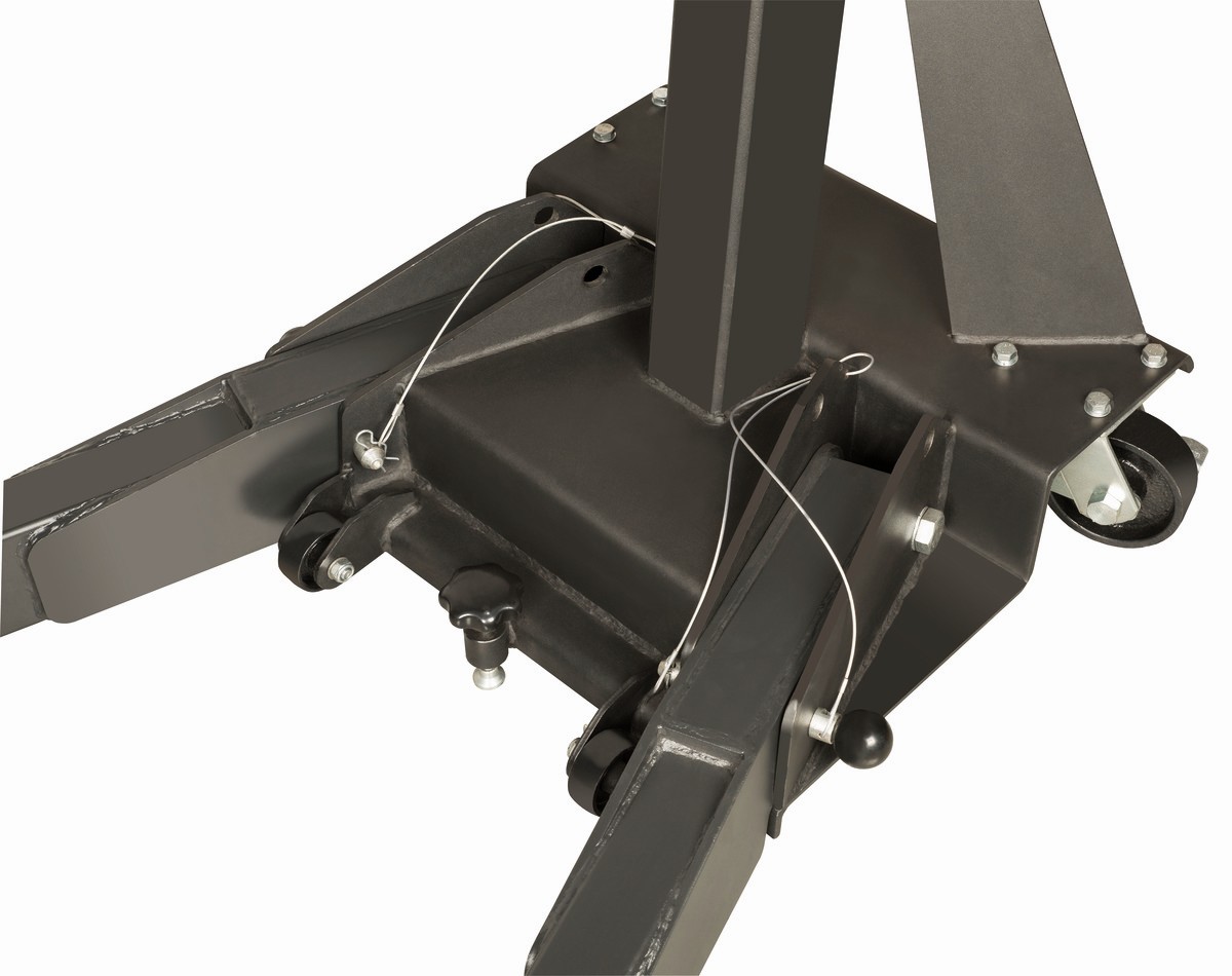 • Patas plegables que permiten que la grúa ocupe muy poco espacio cuando no se utiliza